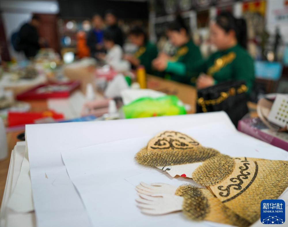 2024年10月12日,在黑龙江省佳木斯抚远市米比赫哲工艺室,学员在进行鱼皮文创产品制作。新华社记者 王建威 摄