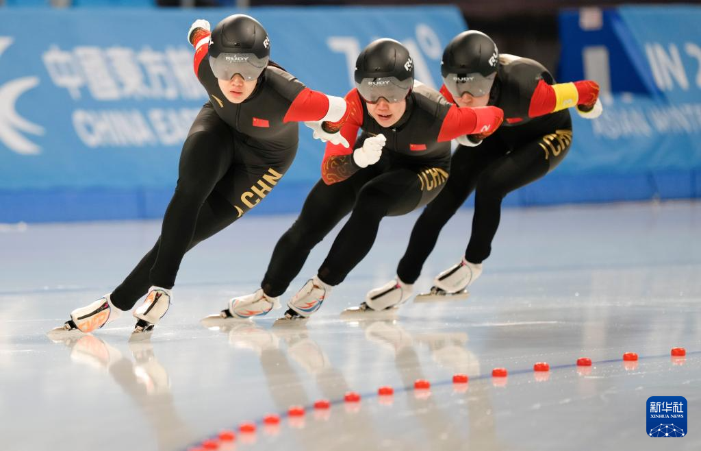 当日,在哈尔滨举行的第九届亚冬会速度滑冰女子短距离团体追逐比赛中,由于诗惠、田芮宁和韩梅组成的中国队获得亚军。