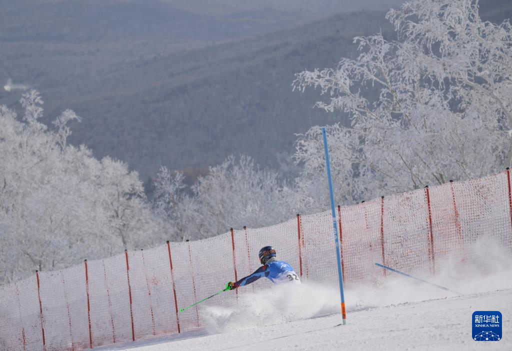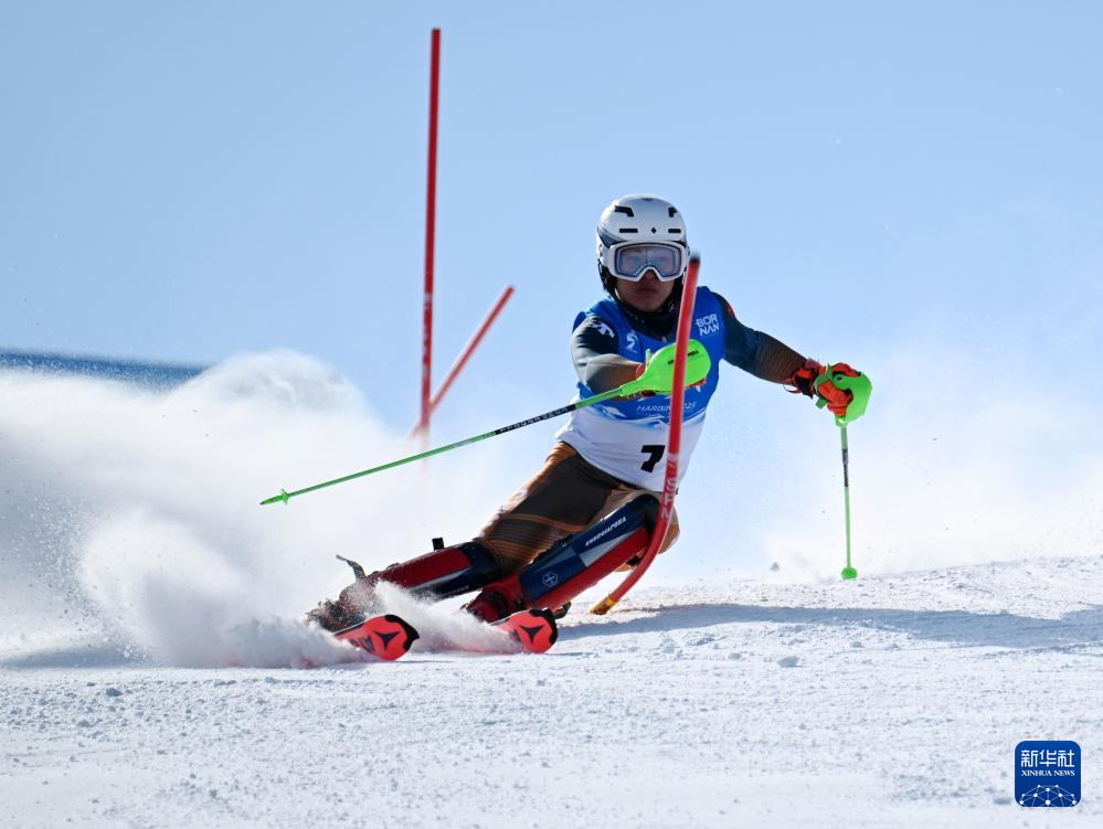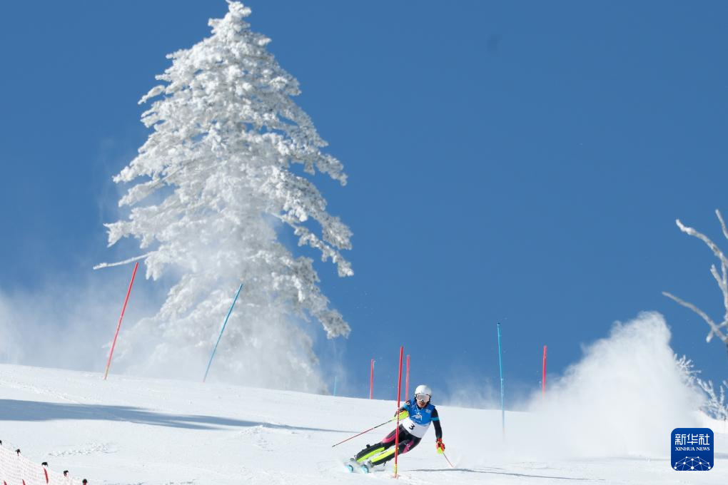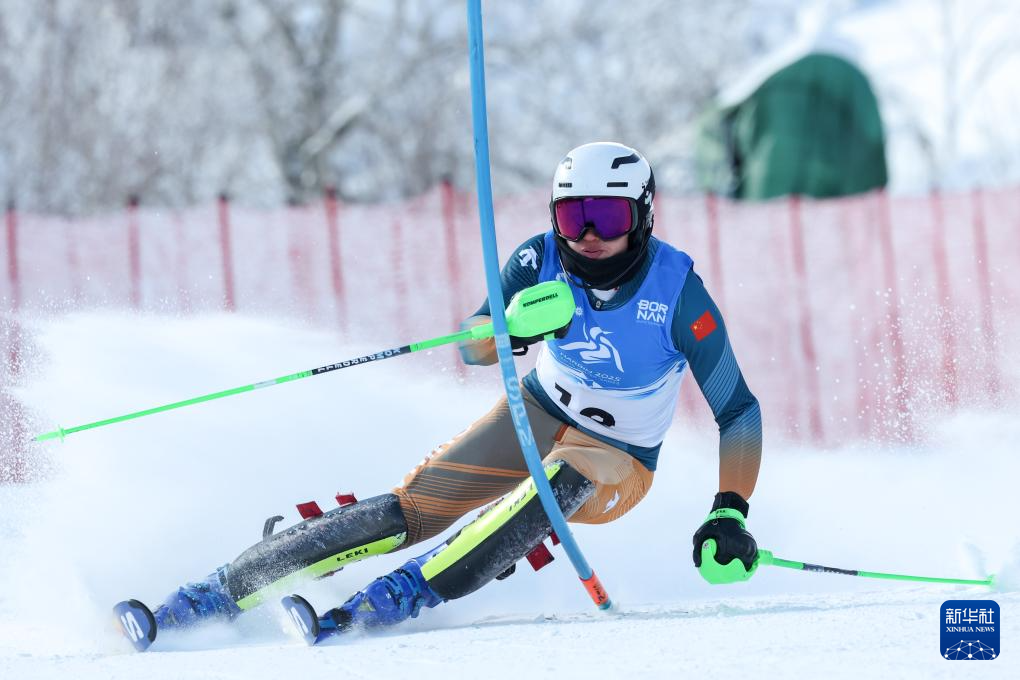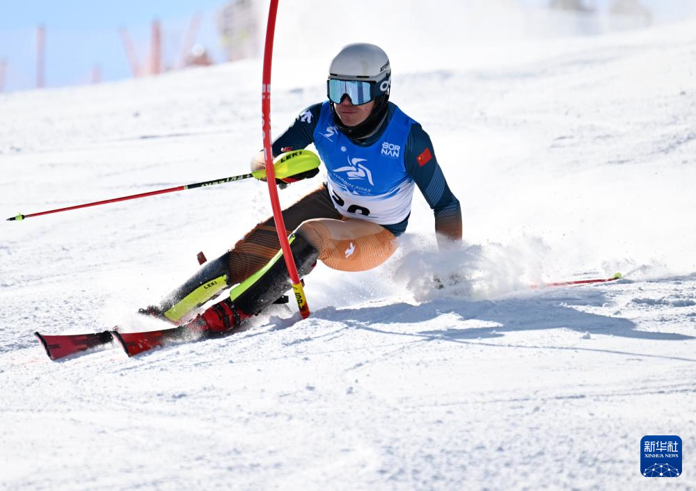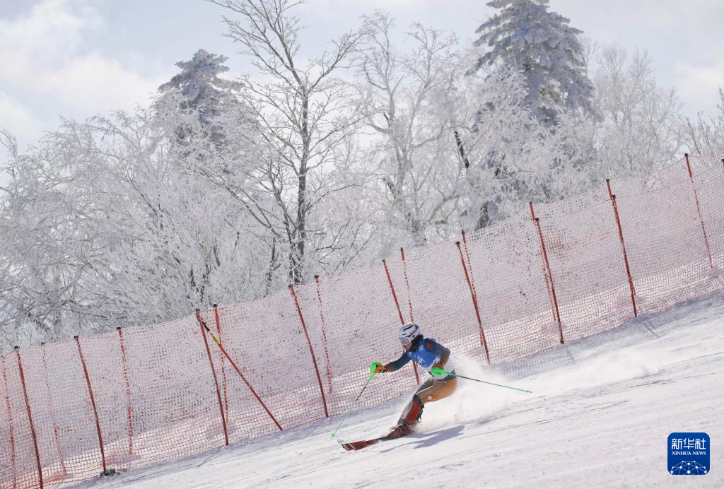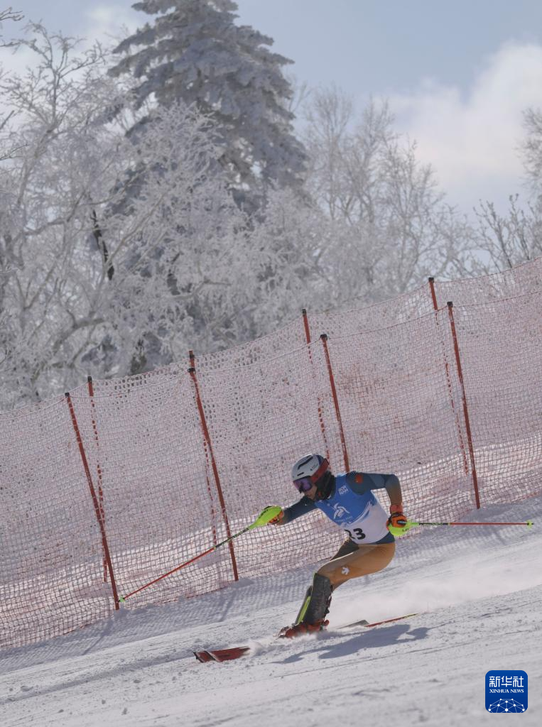 当日,第九届亚冬会高山滑雪男子回转比赛在亚布力赛区举行。