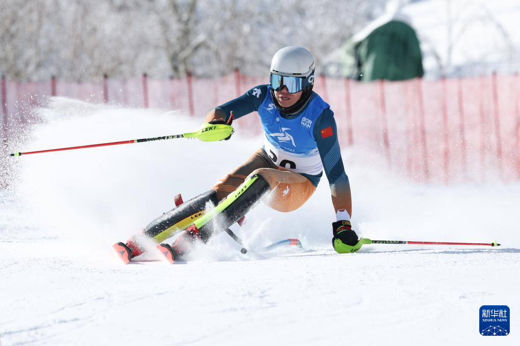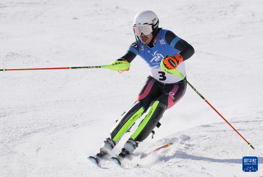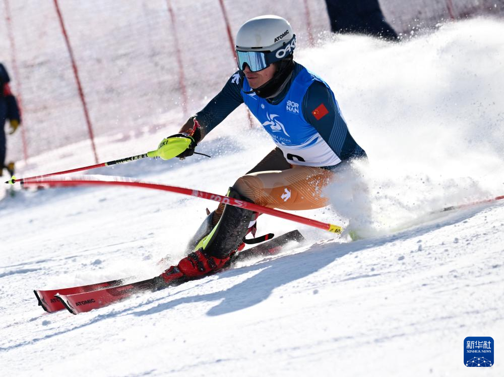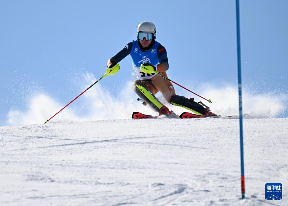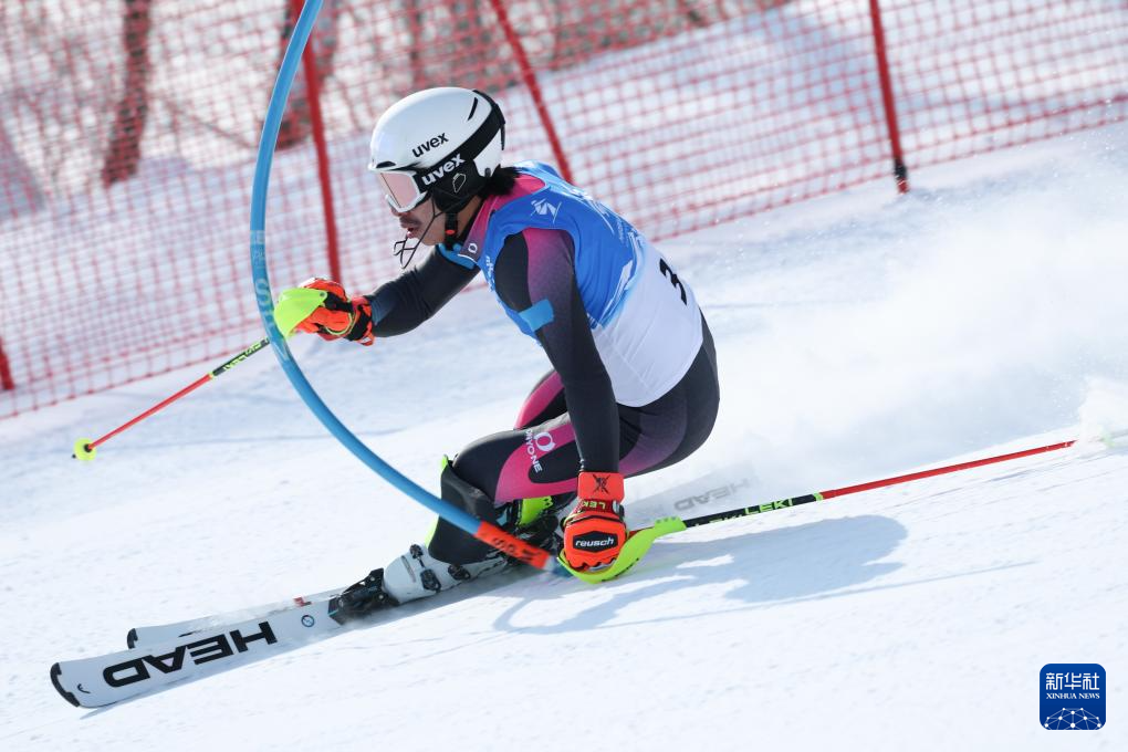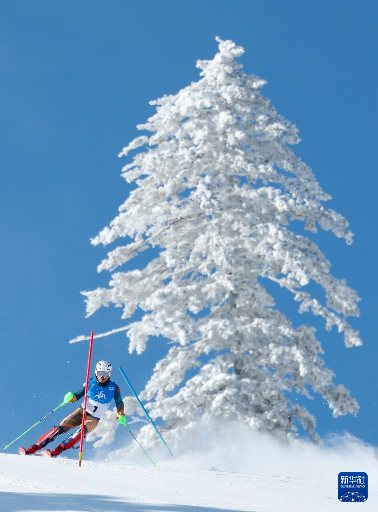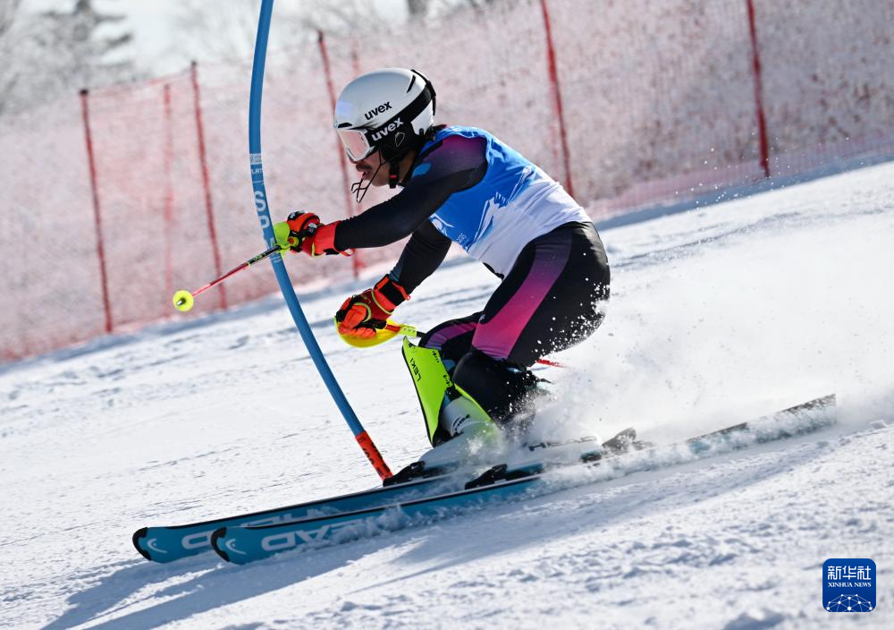 当日,第九届亚冬会高山滑雪男子回转比赛在亚布力赛区举行。