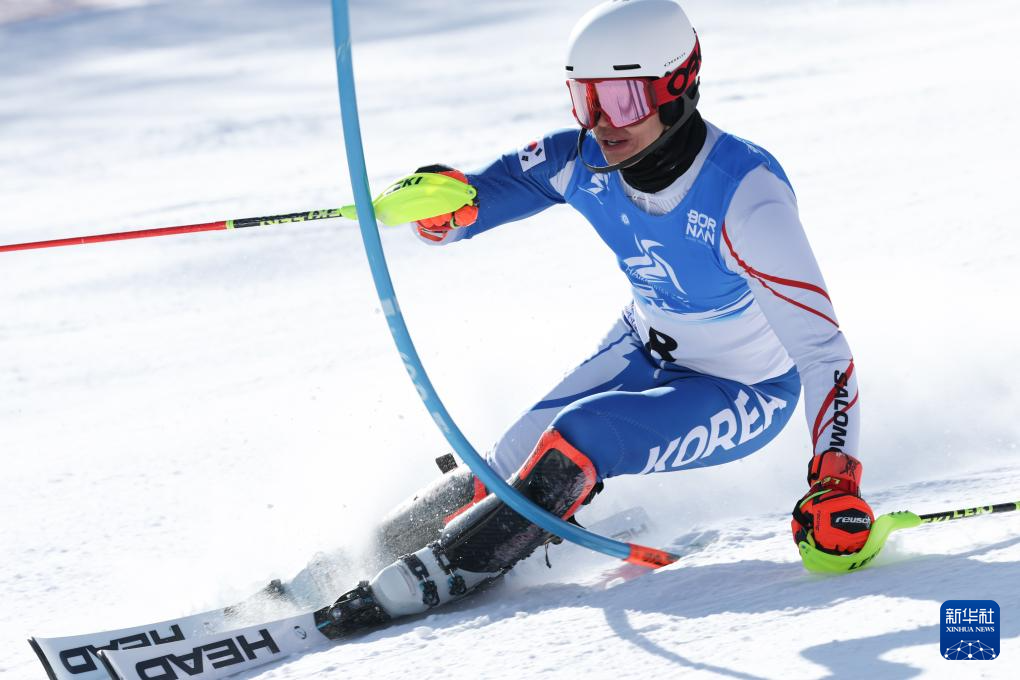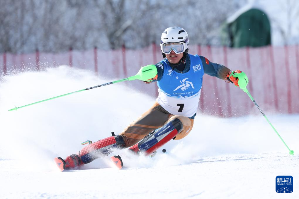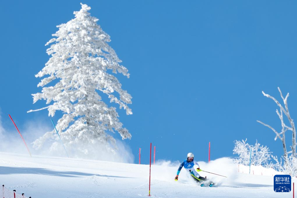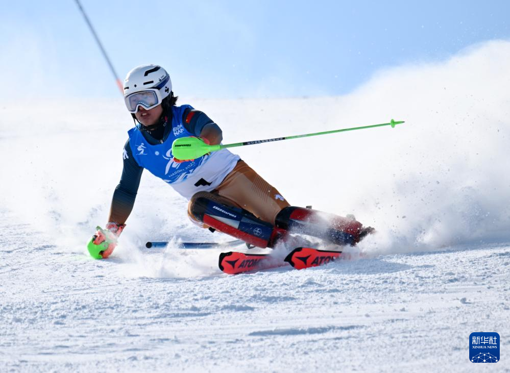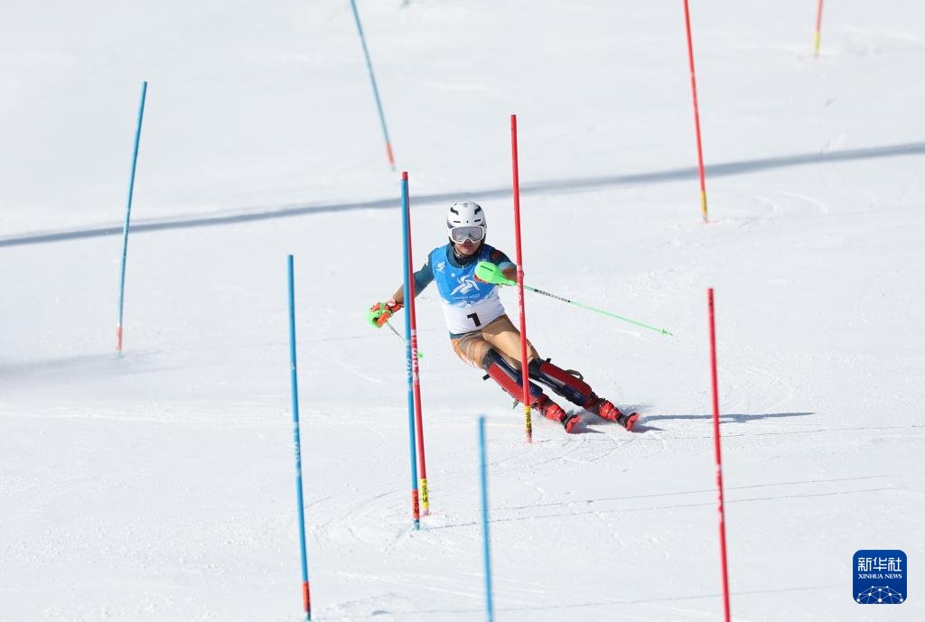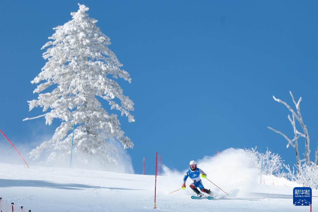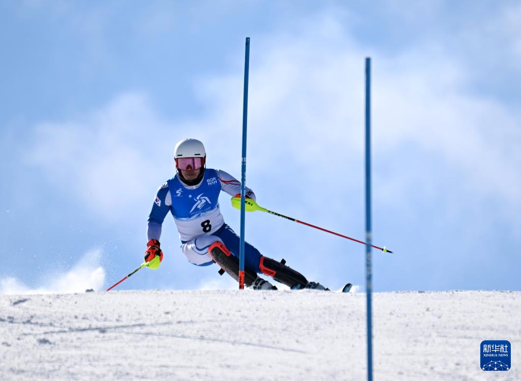当日,第九届亚冬会高山滑雪男子回转比赛在亚布力赛区举行。