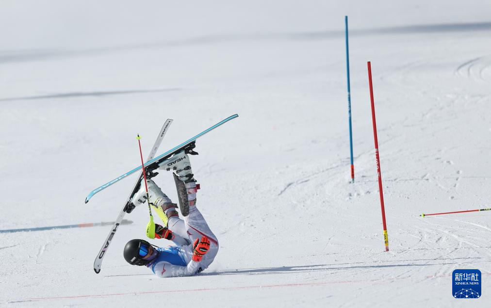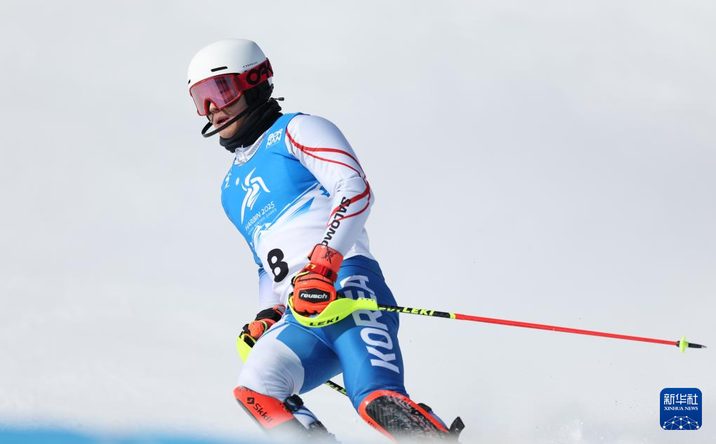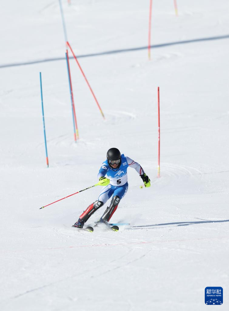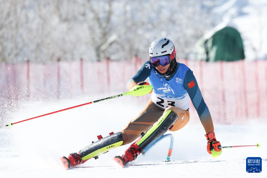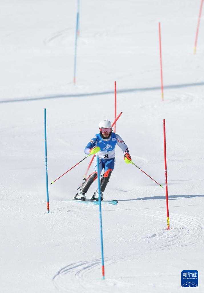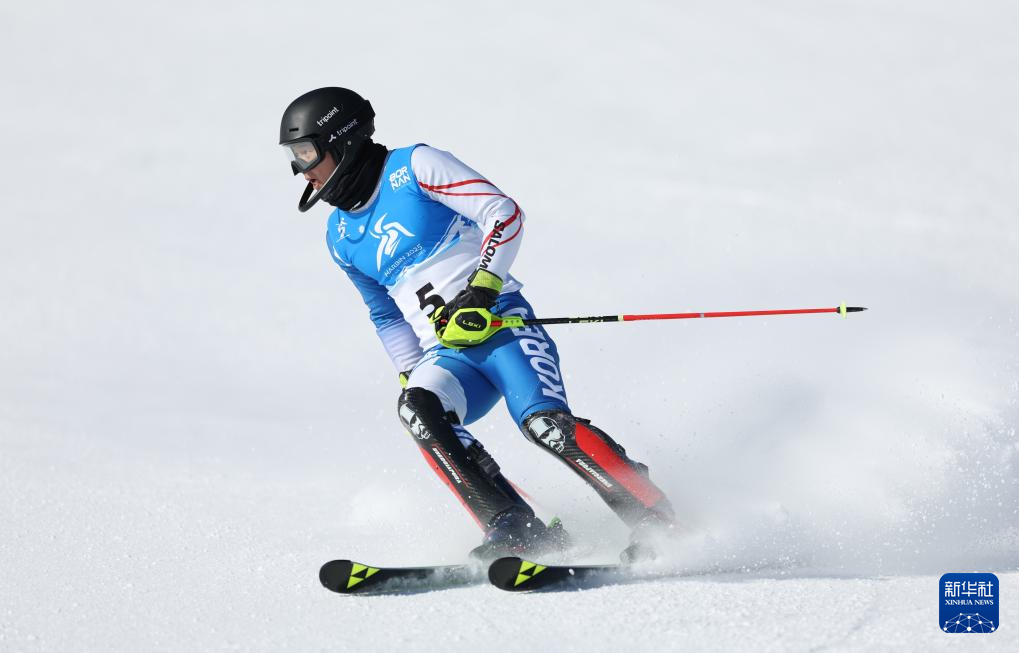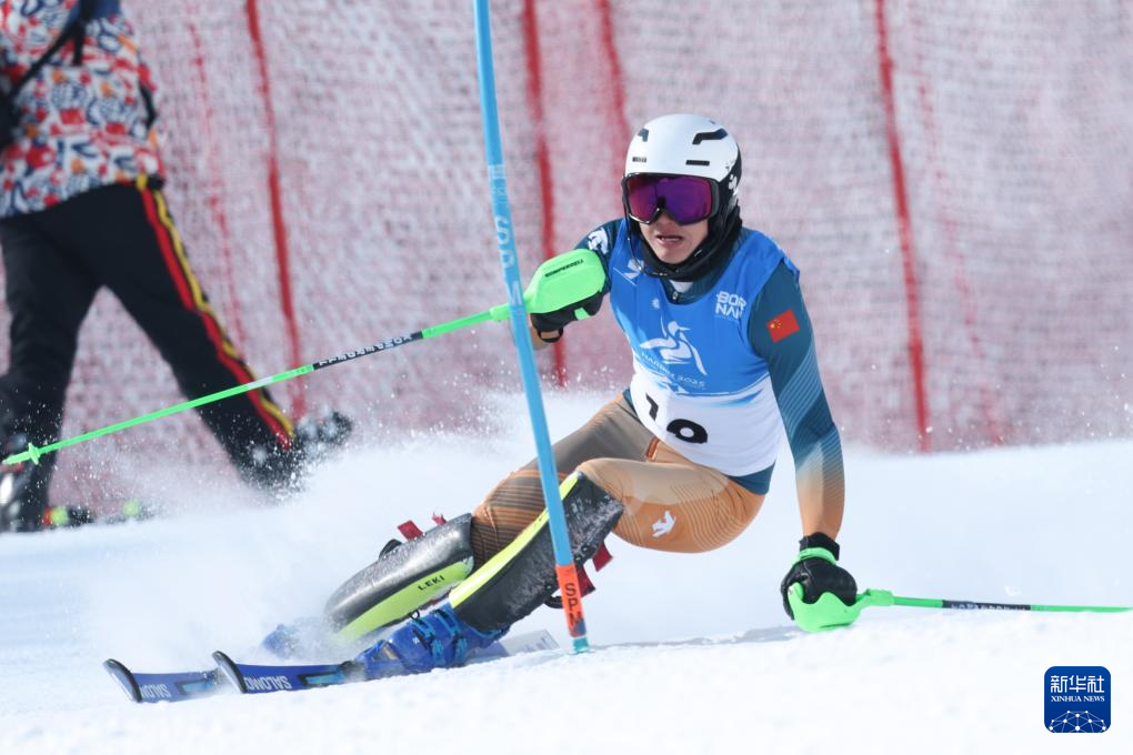 当日,第九届亚冬会高山滑雪男子回转比赛在亚布力赛区举行。
