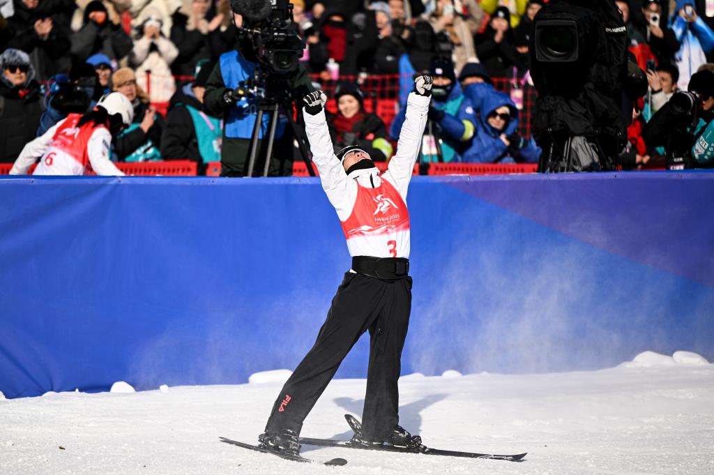 新华社哈尔滨2月9日电(记者刘扬涛、田光雨)跃起、腾空、旋转、落地,徐梦桃用一套行云流水的动作,为自己的首个比赛日画上完美句号。在9日结束的第九届亚冬会自由式滑雪女子个人空中技巧决赛中,徐梦桃为中国队再添一金。