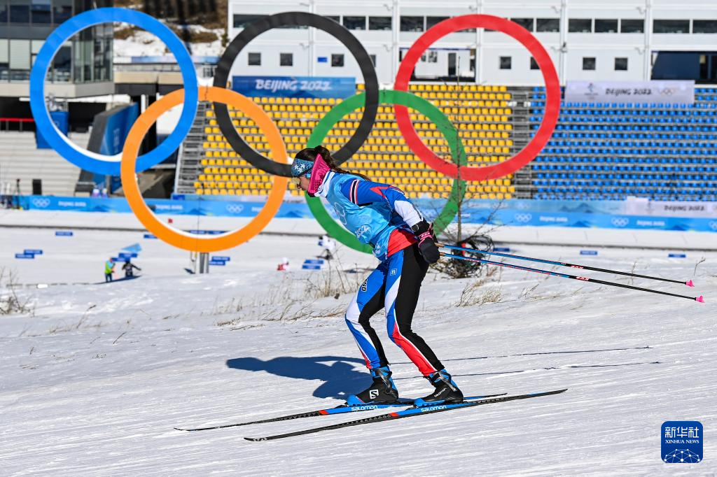 这是马克·尚隆的妹妹卡伦·尚隆在北京冬奥会张家口赛区的国家越野滑雪中心训练备战(2022年2月2日摄)。