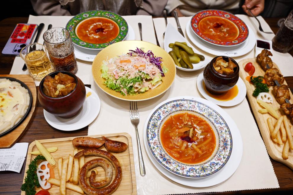 在哈尔滨市道里区的百年洋房92度彼得堡俄餐厅拍摄的俄式美食。新华社发(刘洋 摄)