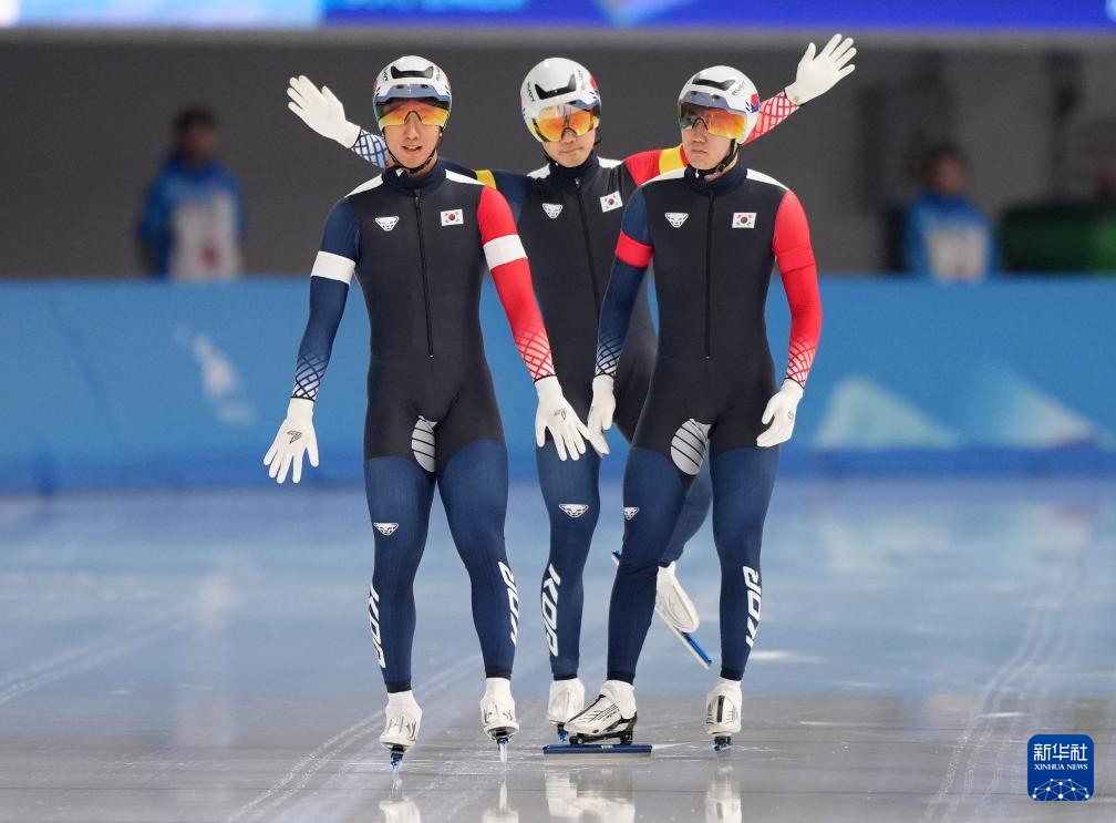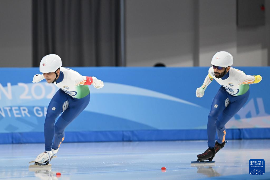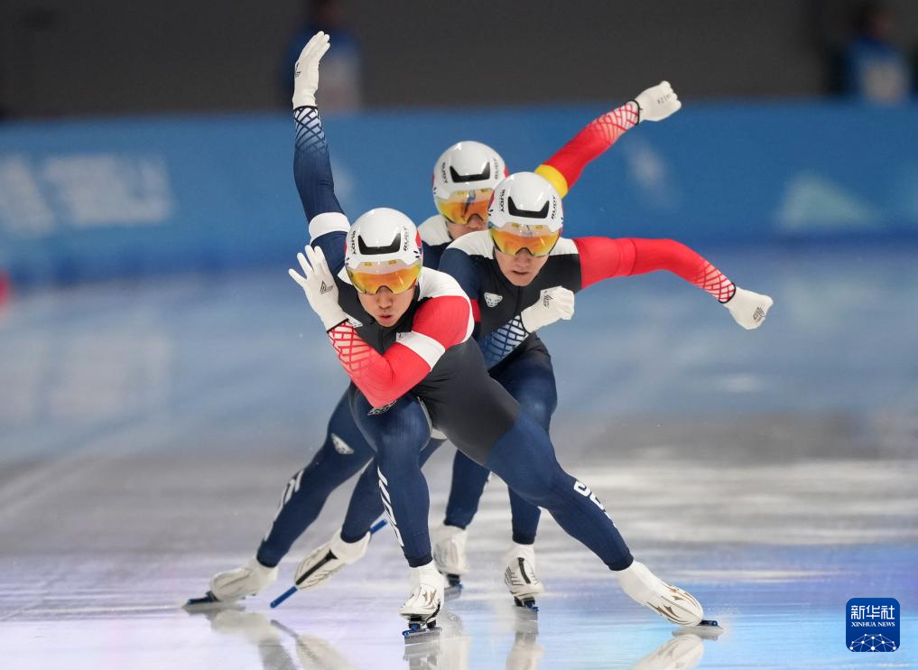 当日,第九届亚冬会速度滑冰男子短距离团体追逐比赛在哈尔滨举行。