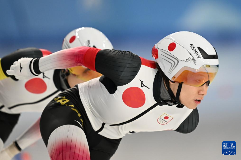 2月10日,日本队选手森重航(右)在比赛中。最终,日本队获得季军。