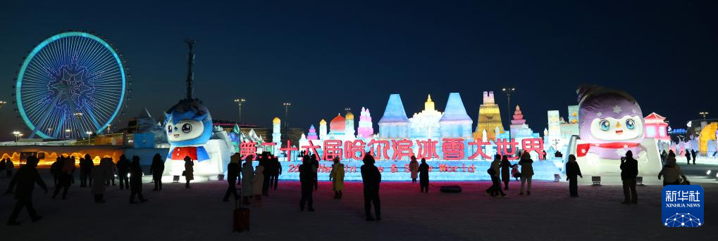 2月9日,游客在哈尔滨冰雪大世界游览。