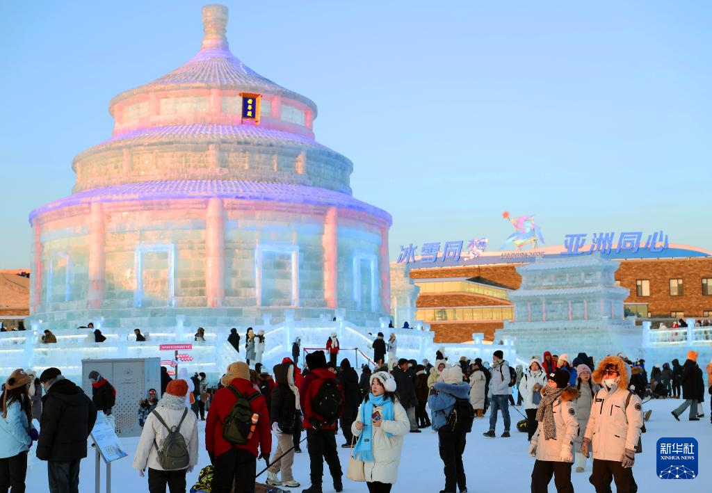 冰雪旅游热门目的地黑龙江哈尔滨在第九届亚冬会的带动效应下,吸引了众多国内外游客前来赏冰乐雪,感受冰雪之美。