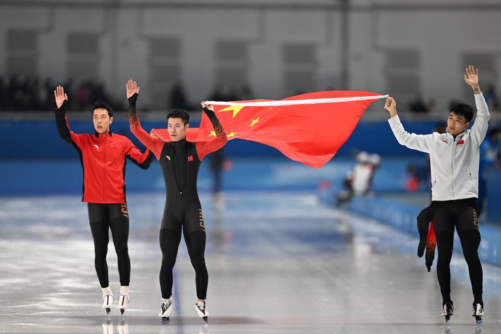 男子短距离团体追逐共有五支队伍参赛,中国队由高亭宇、廉子文、宁忠岩出战,与韩国队分在同组,最终中国队以1分19秒22完赛。日本队与哈萨克斯坦队最后一组出发,最终两队成绩都慢于中国队,中国队拿下这枚团体项目金牌,韩国队、日本队分获银牌和铜牌。
