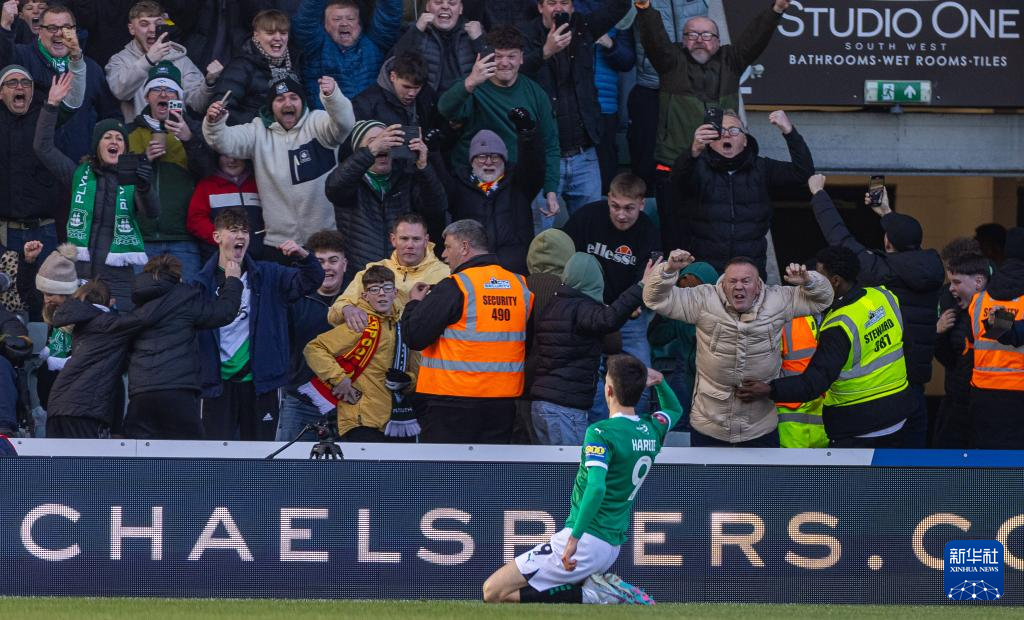 2月9日,普利茅斯队球员哈迪庆祝进球。