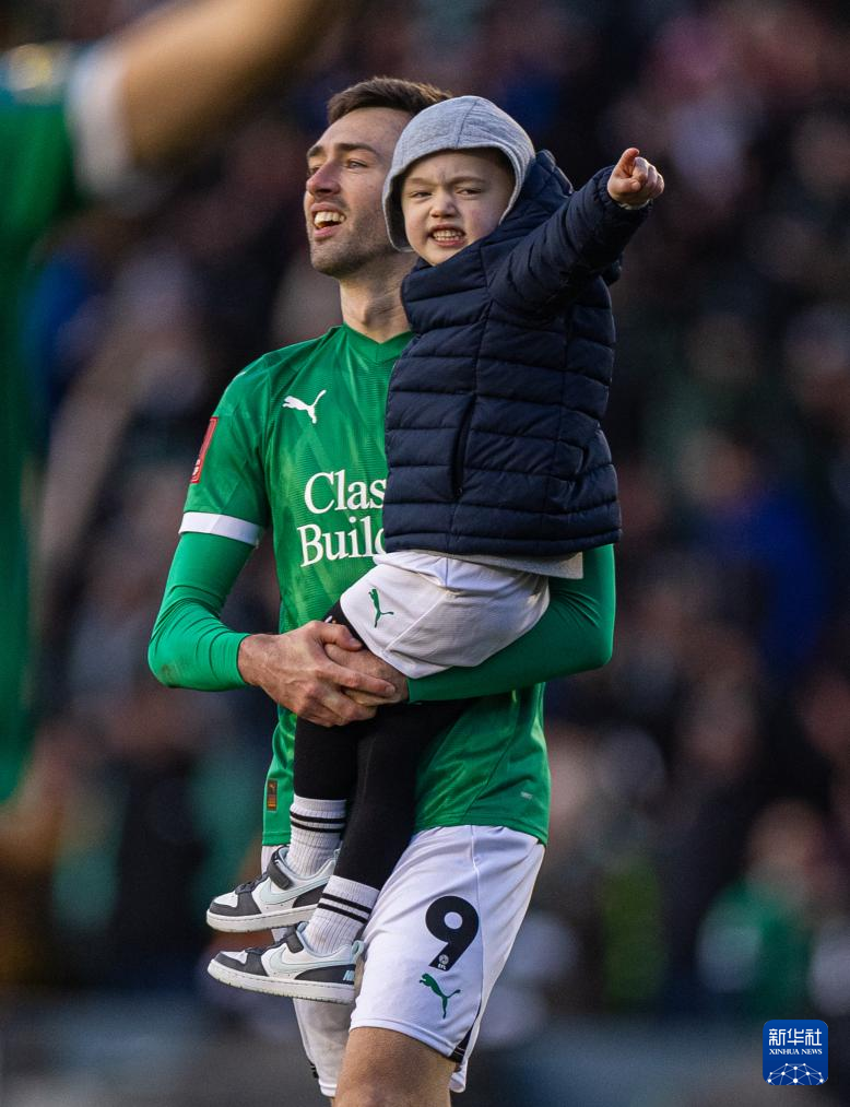 2月9日,普利茅斯队球员哈迪与儿子在比赛后庆祝胜利。