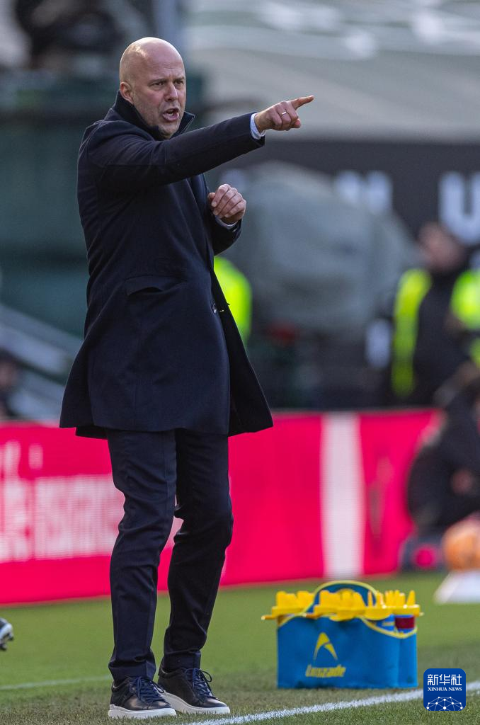 2月9日,利物浦队主教练斯洛特在场边指挥。