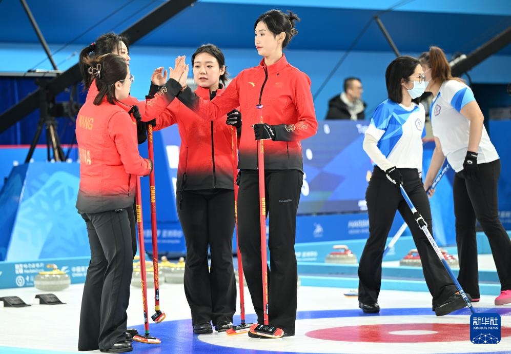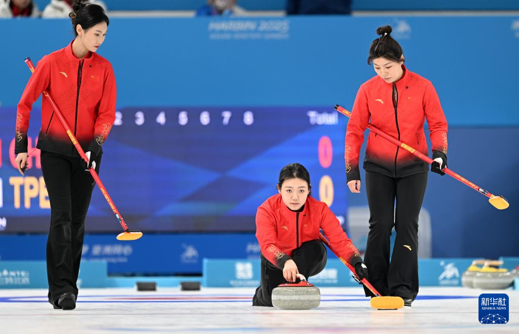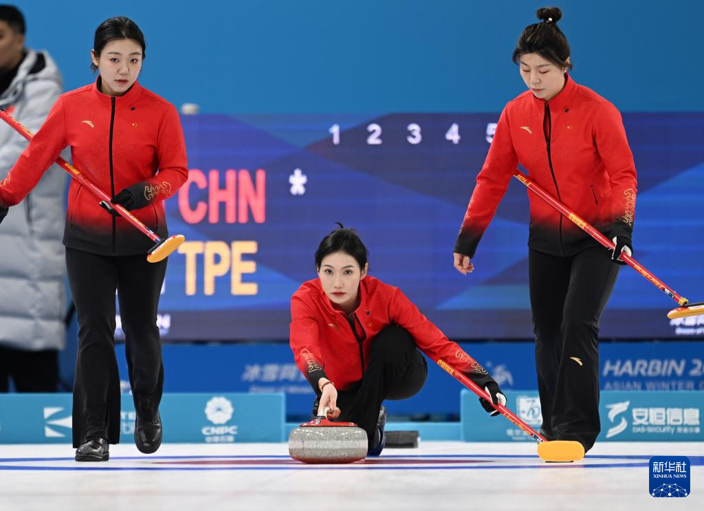 当日,在哈尔滨举行的第九届亚冬会冰壶女子循环赛第三轮比赛中,中国队14比2战胜中国台北队。