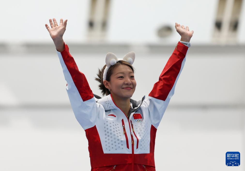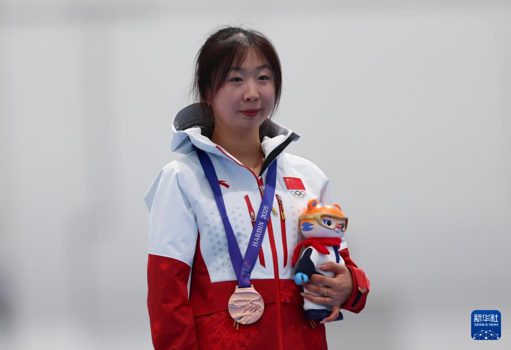 2月10日,亚军中国选手韩梅在颁奖仪式上。