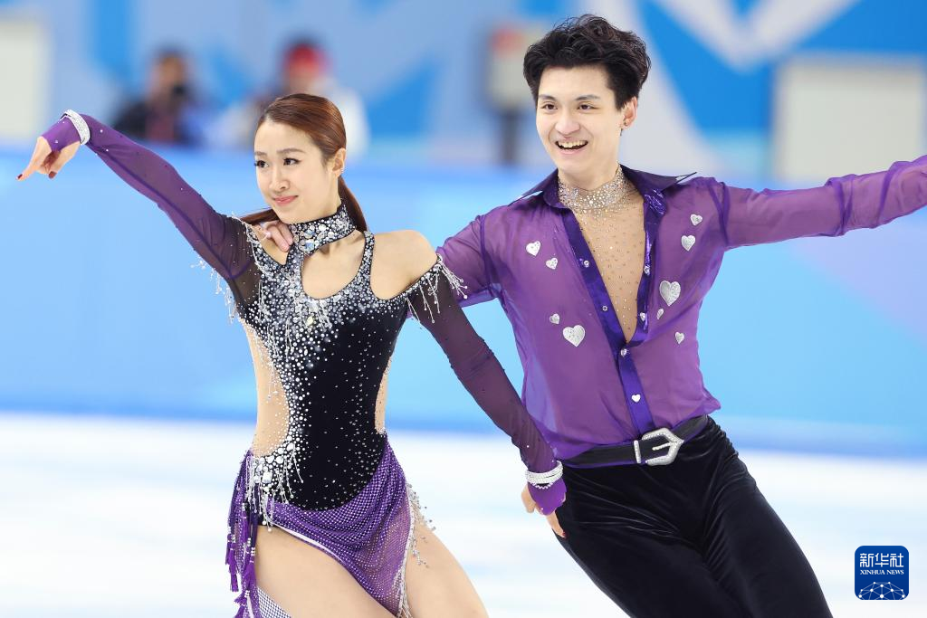 2月11日,日本组合吉田呗菜(右)/森田真沙也在比赛中。最终,他们以68.88分的成绩暂列第一。