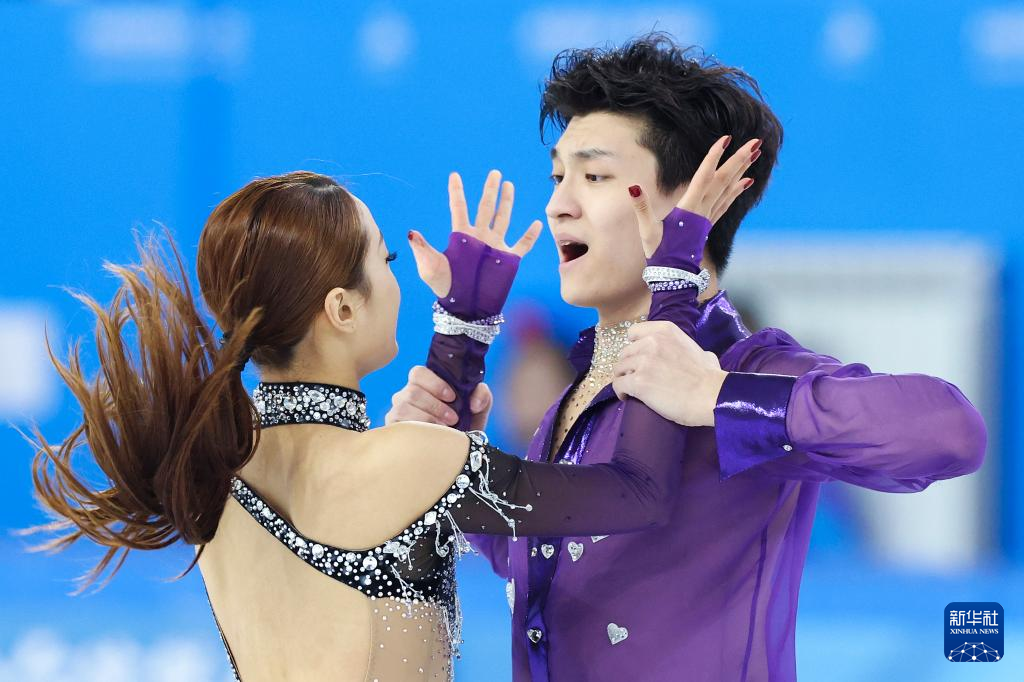 2月11日,中国组合肖紫兮(右)/何凌昊在比赛中。最终,他们以62.64分的成绩暂列第四。