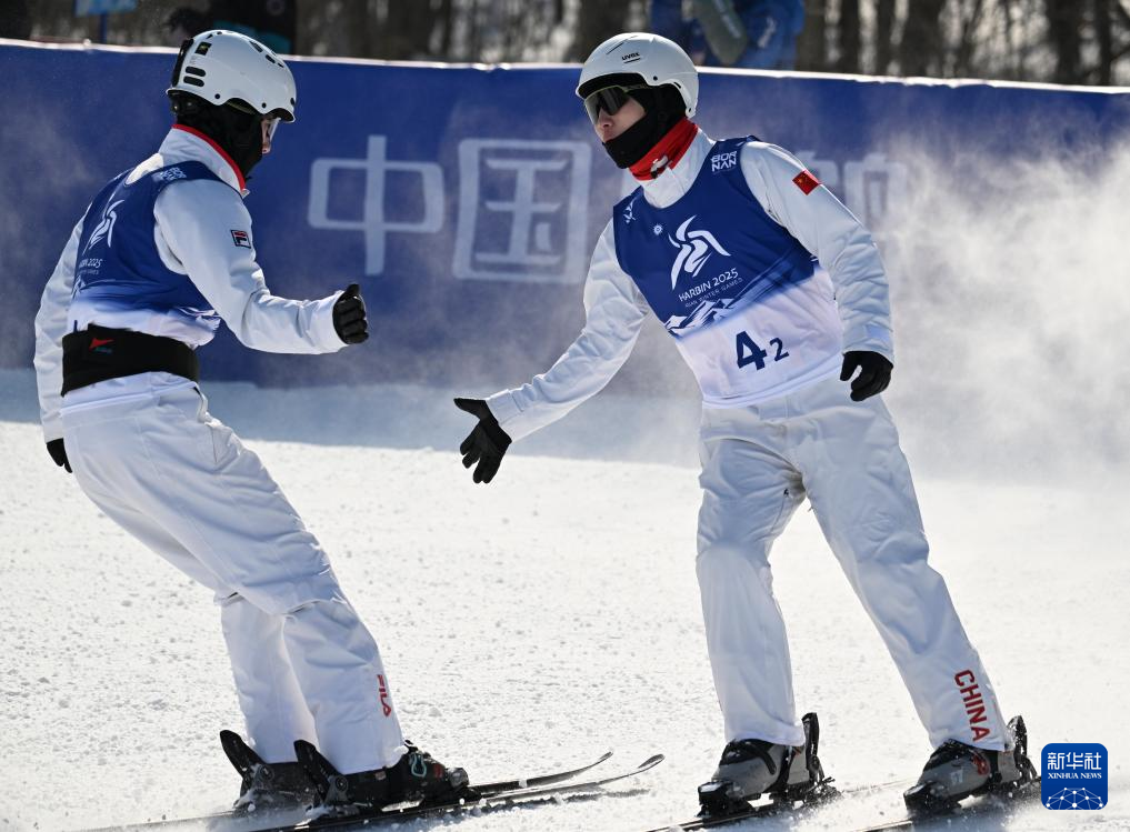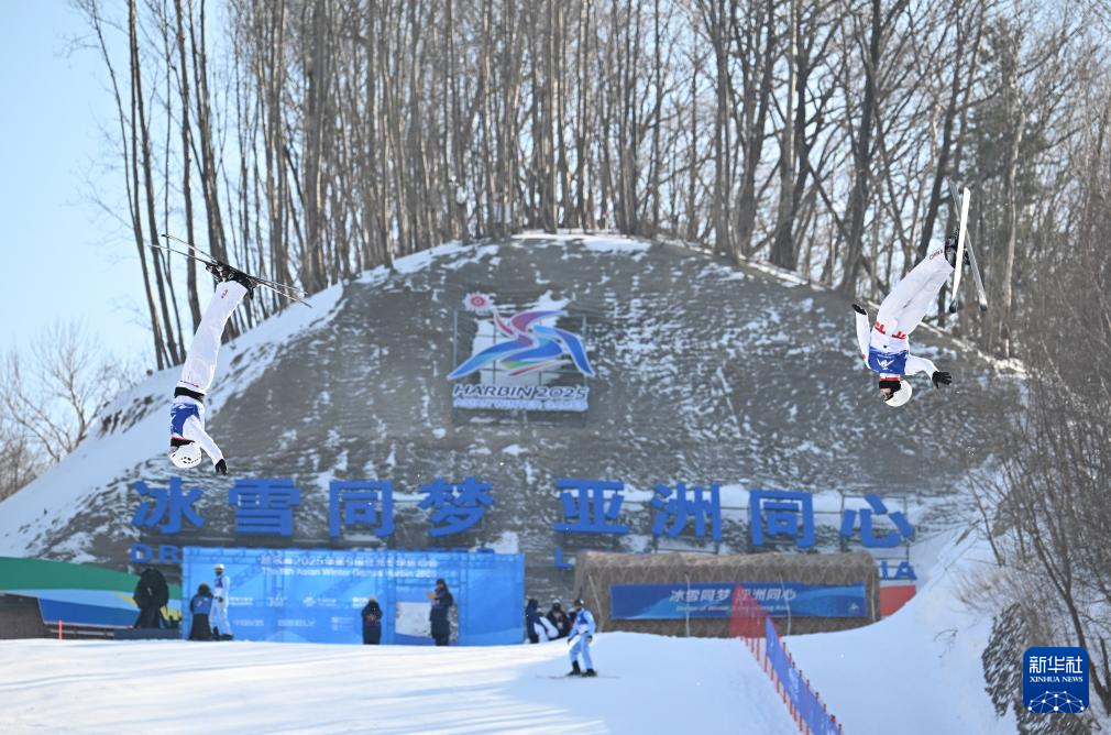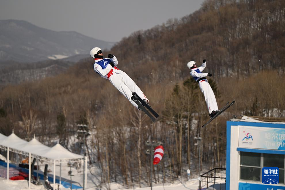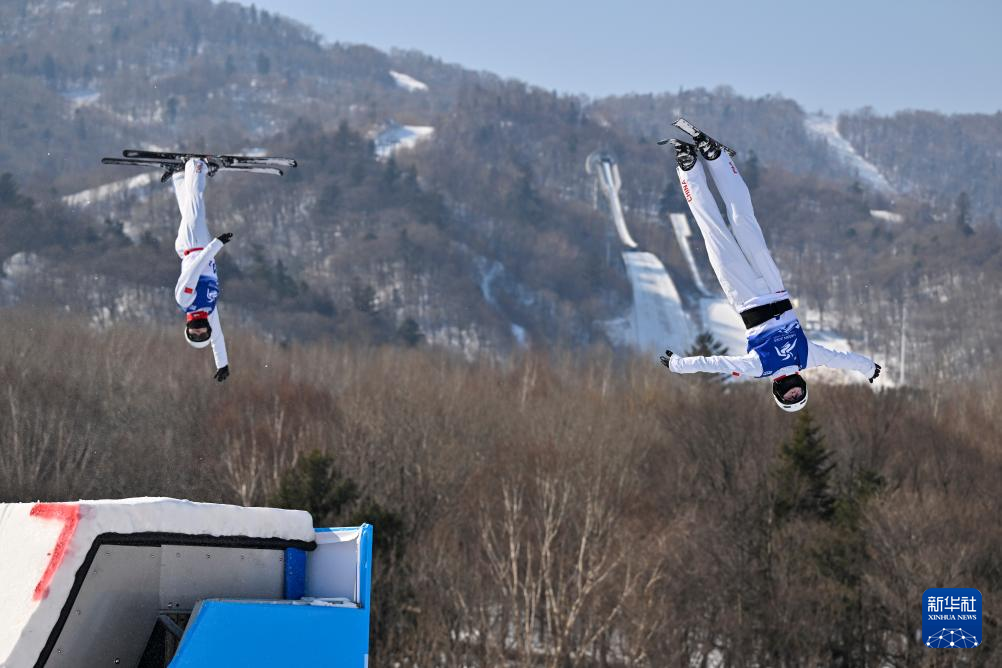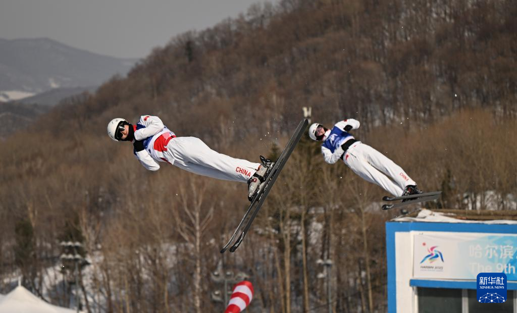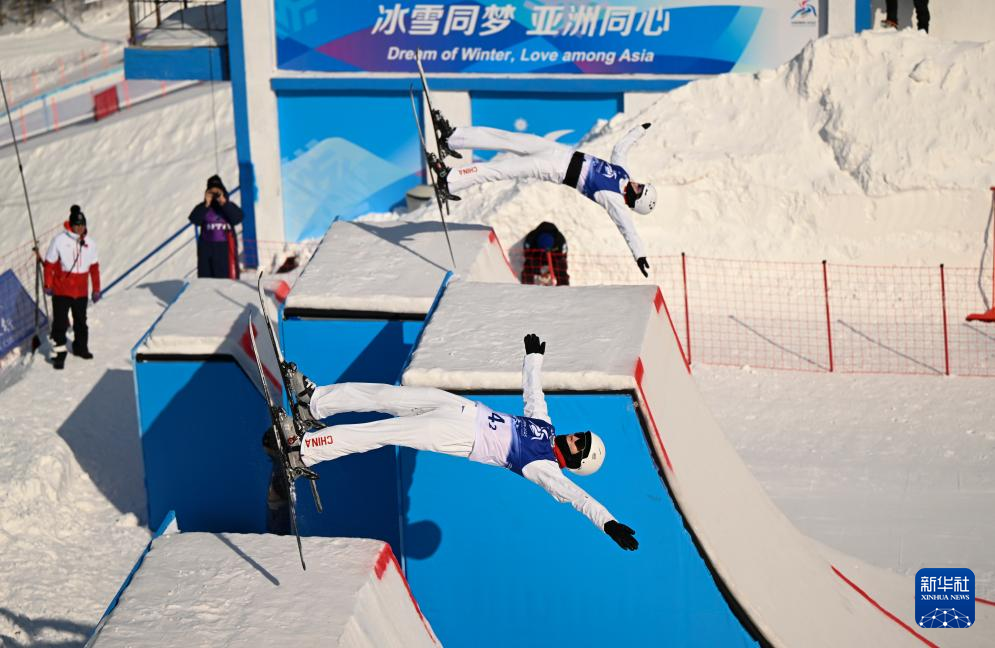 当日,第九届亚冬会自由式滑雪男子空中技巧双人同步决赛在亚布力举行。中国队选手耿虎/杨雨衡获得亚军,李心鹏/齐广璞获得季军。