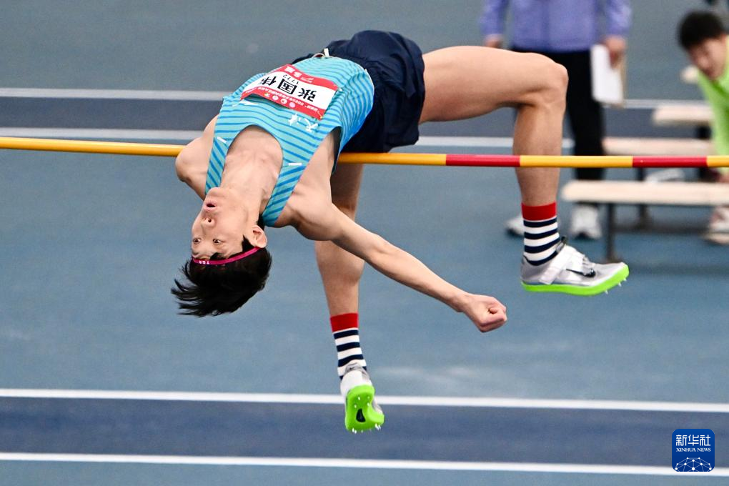 2月10日,张国伟在男子跳高决赛中。