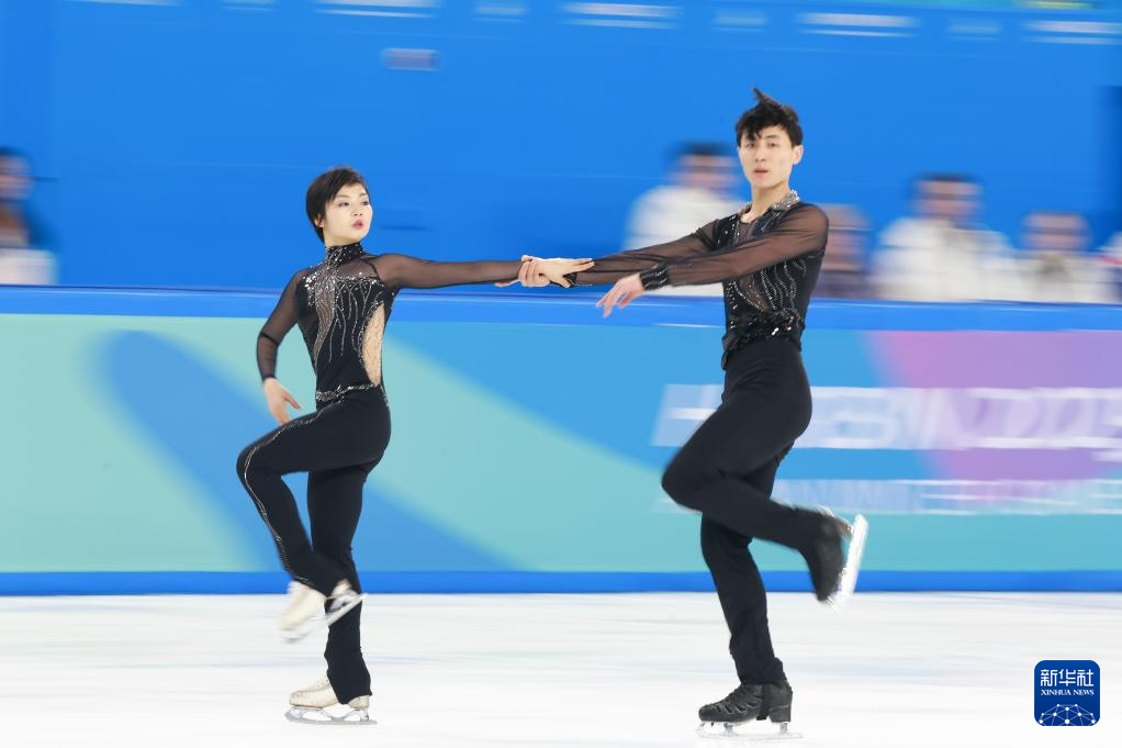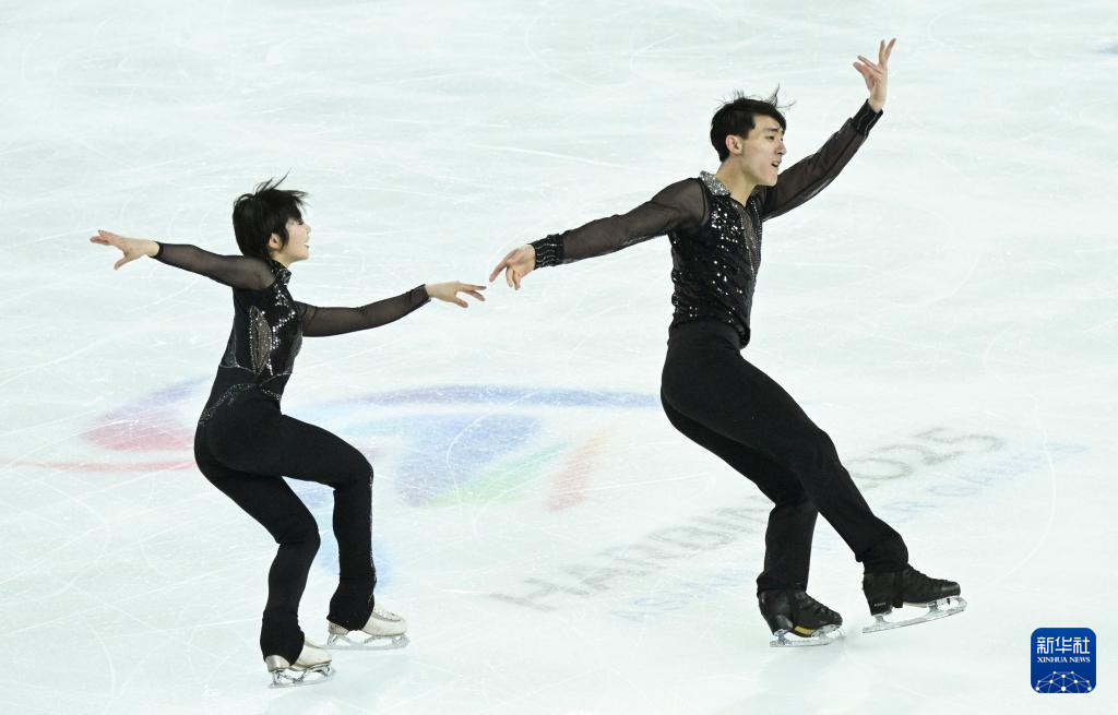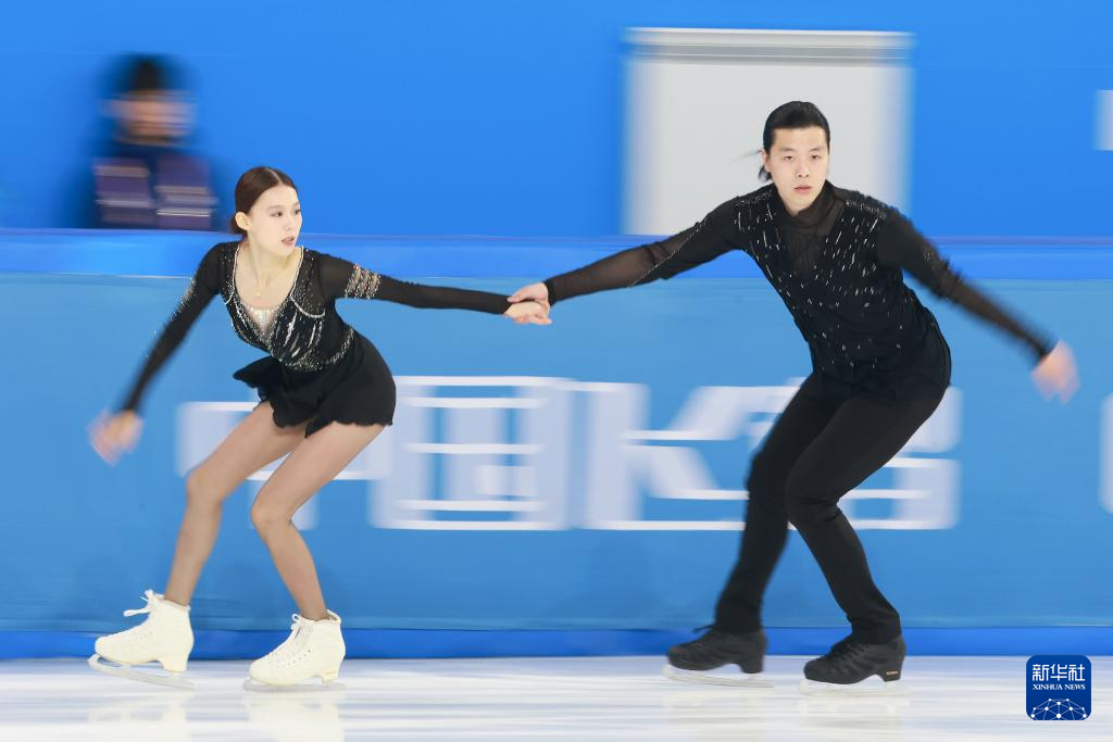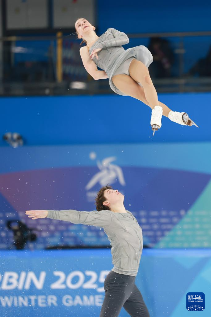 当日,第九届亚冬会花样滑冰项目双人滑短节目比赛在黑龙江省冰上训练中心综合馆举行。
