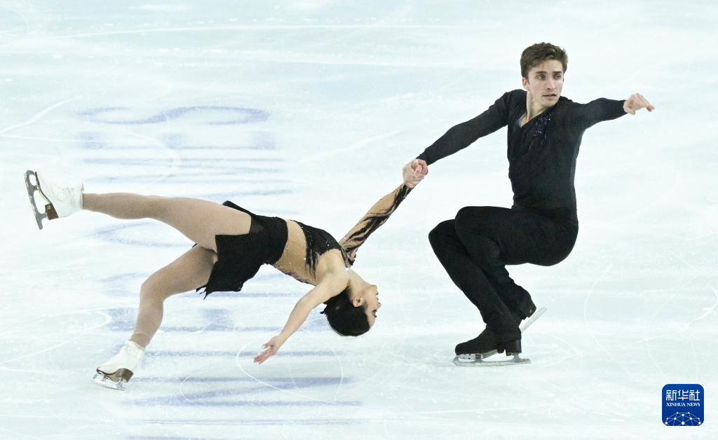 2月11日,日本组合长冈柚奈(上)/森口澄士在比赛中。