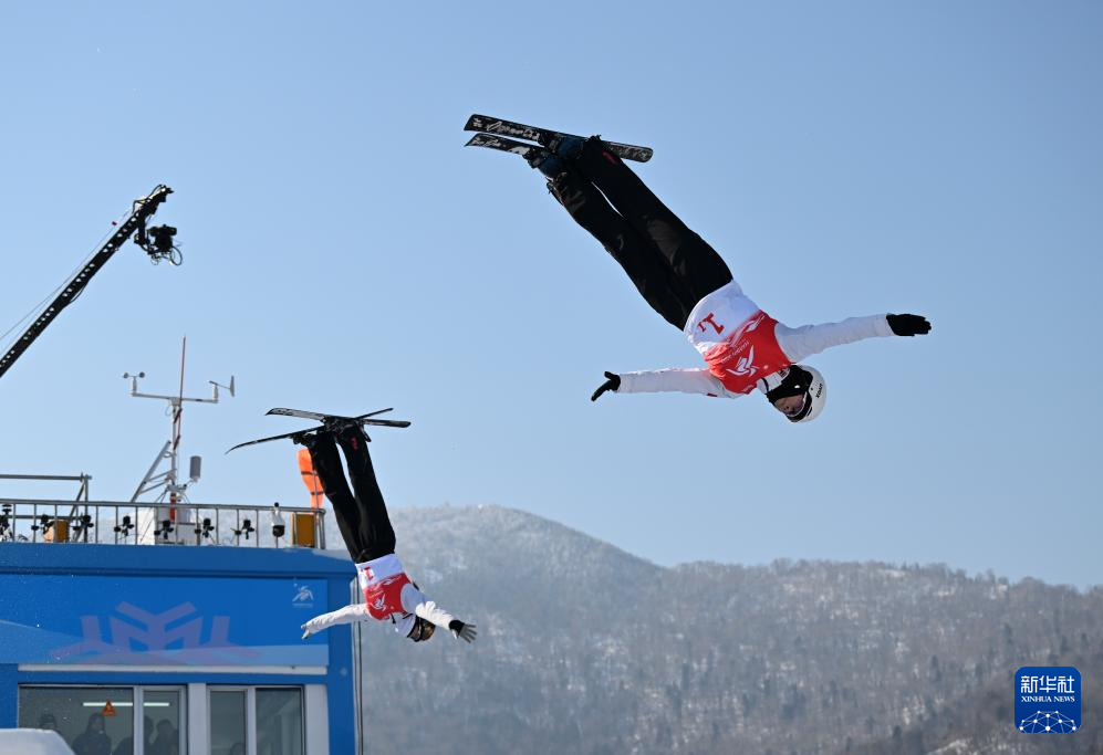 当日,第九届亚冬会自由式滑雪女子空中技巧双人同步决赛在亚布力举行。中国队选手陈梅婷/徐梦桃获得亚军。