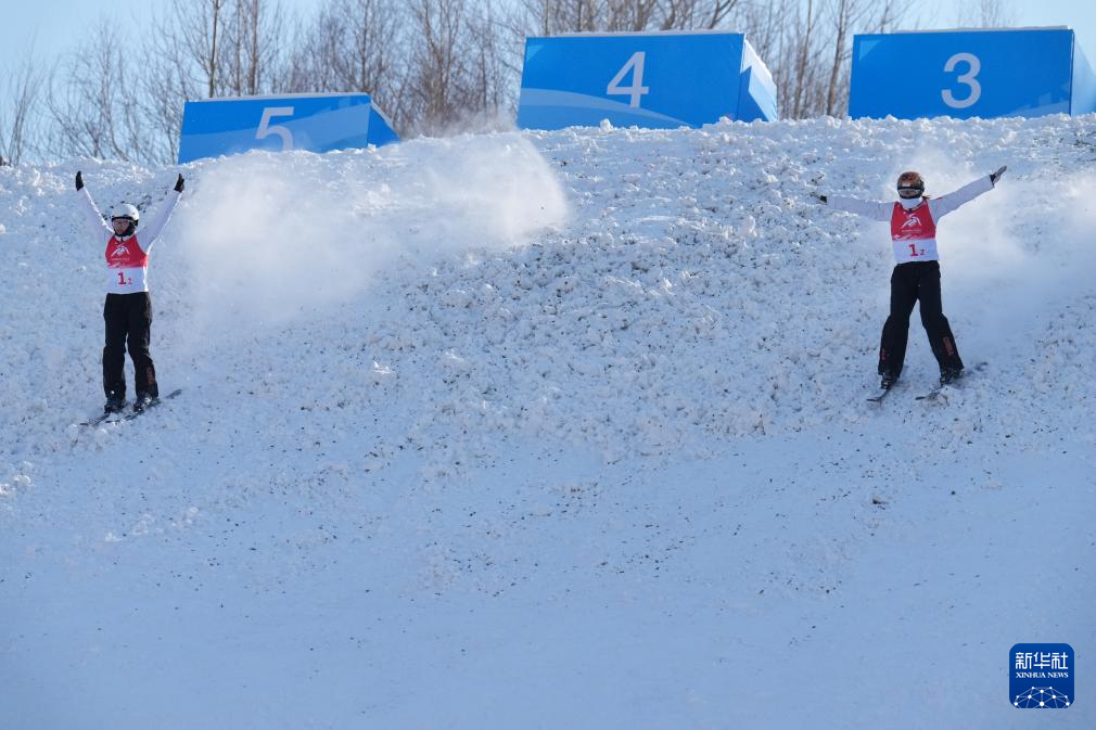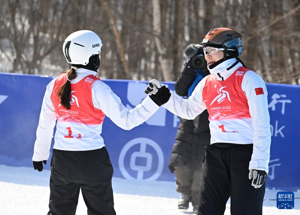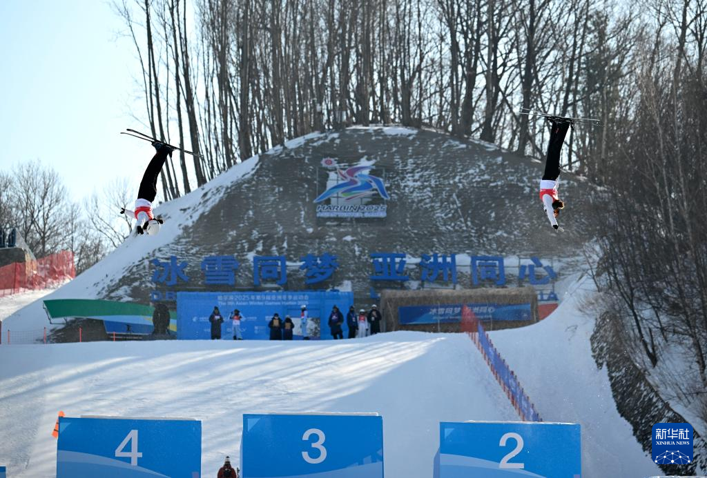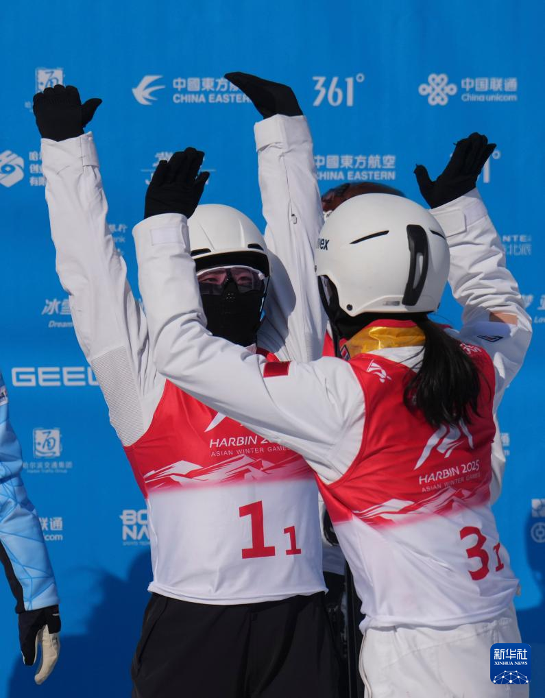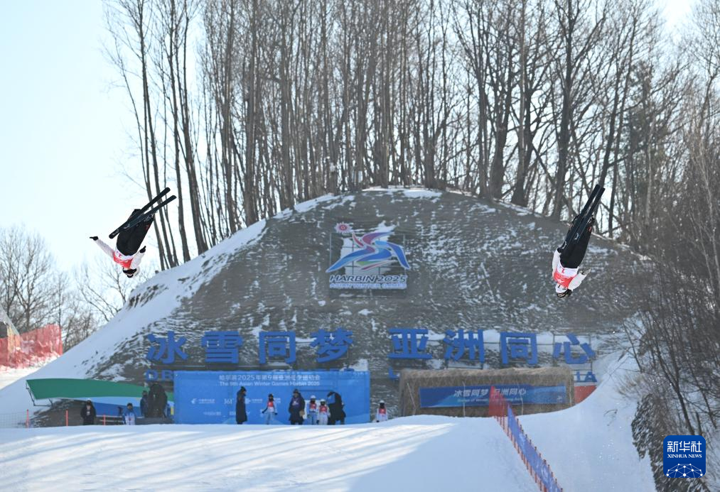当日,第九届亚冬会自由式滑雪女子空中技巧双人同步决赛在亚布力举行。中国队选手陈梅婷/徐梦桃获得亚军。冯俊熙/王雪夺得冠军。