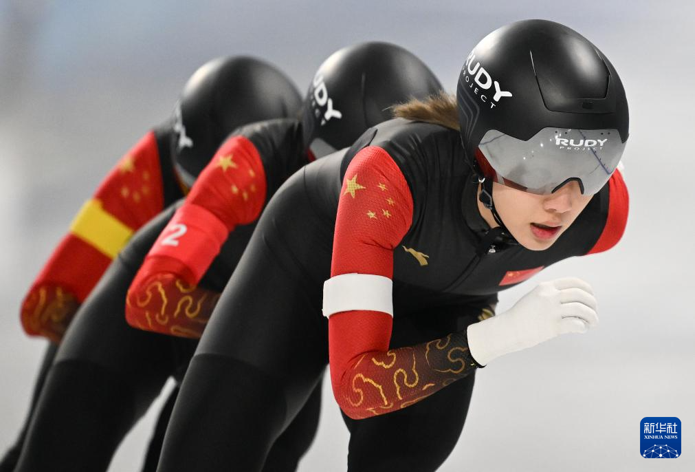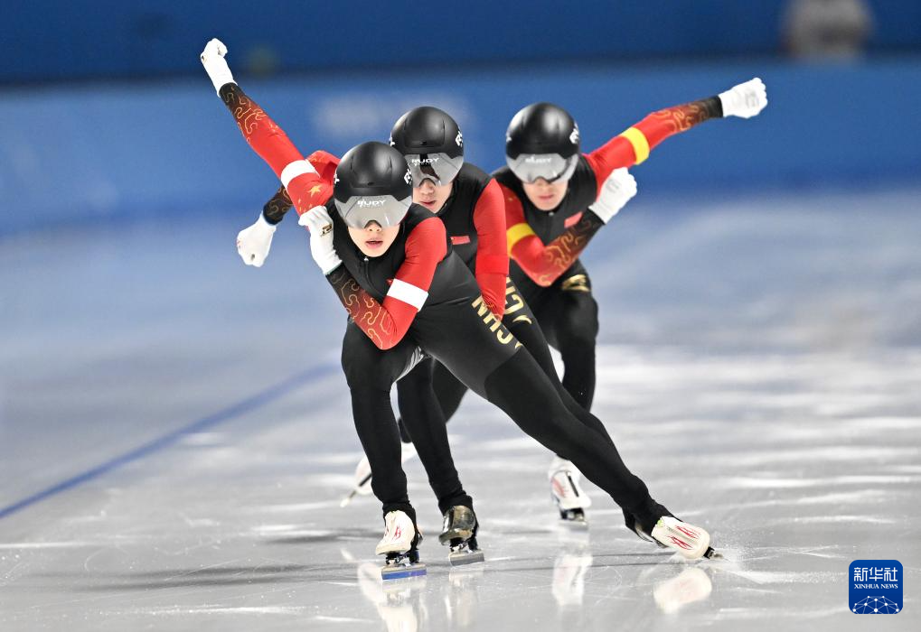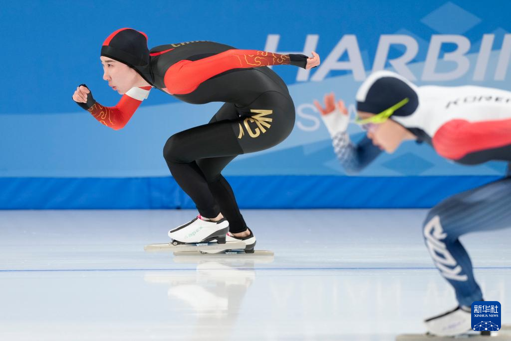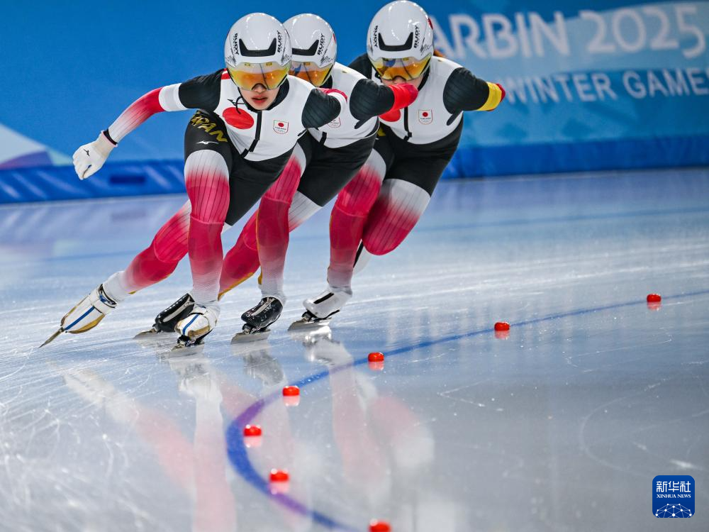 当日,第九届亚冬会速度滑冰女子团体追逐比赛在哈尔滨举行。