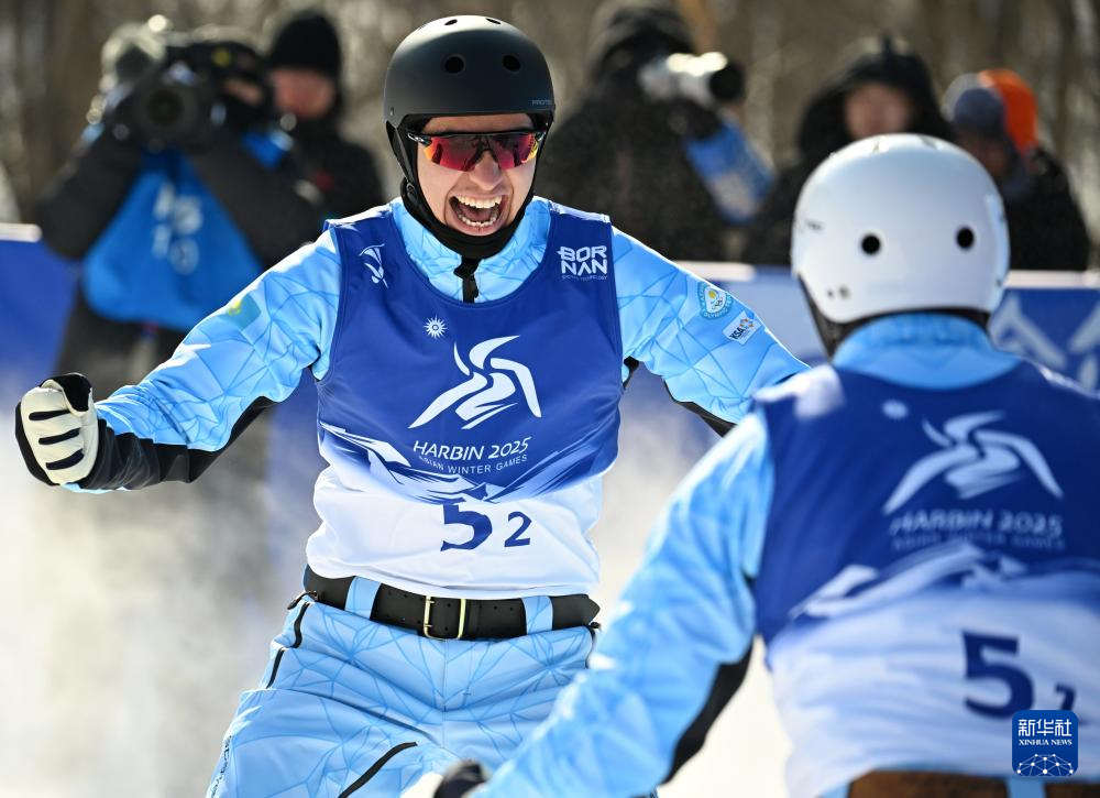 2月11日,哈萨克斯坦选手罗曼·伊万诺夫/谢尔佐德·卡希尔巴耶夫(左)在比赛中。最终,他们获得冠军。