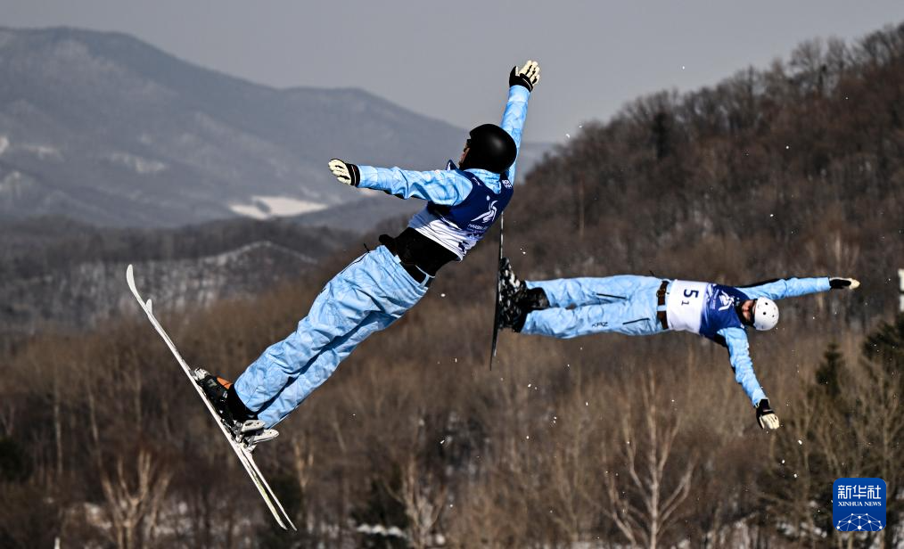 当日,第九届亚冬会自由式滑雪男子空中技巧双人同步决赛在亚布力举行。