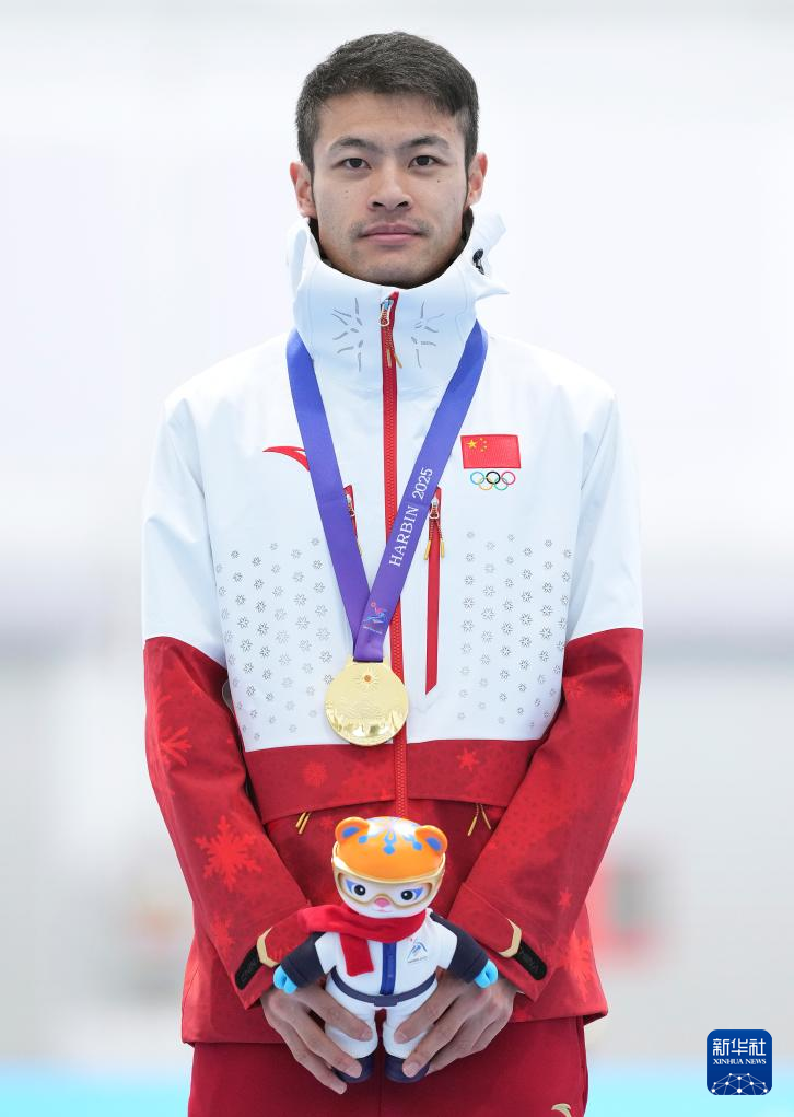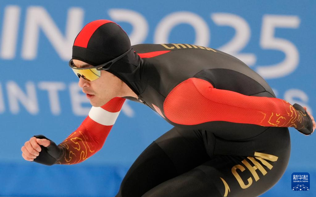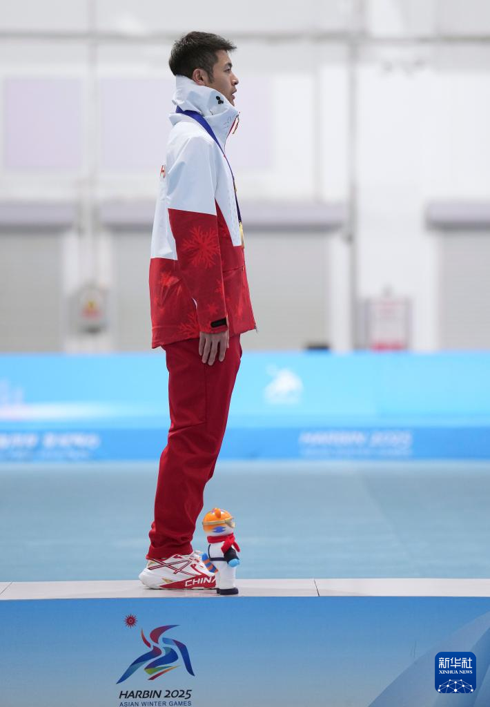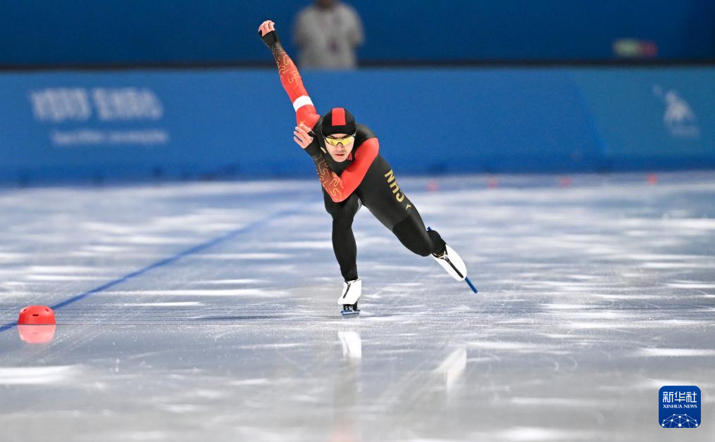 当日,第九届亚冬会速度滑冰男子1000米决赛在哈尔滨举行。中国选手宁忠岩夺得冠军。