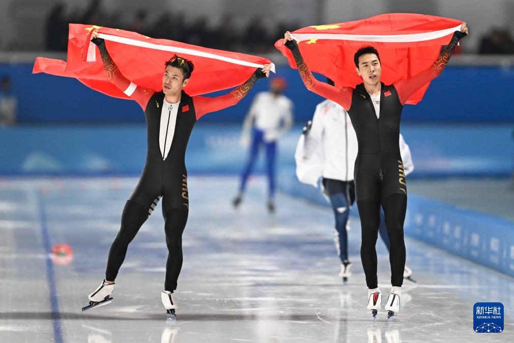 2月11日,宁忠岩(左)、廉子文赛后庆祝。