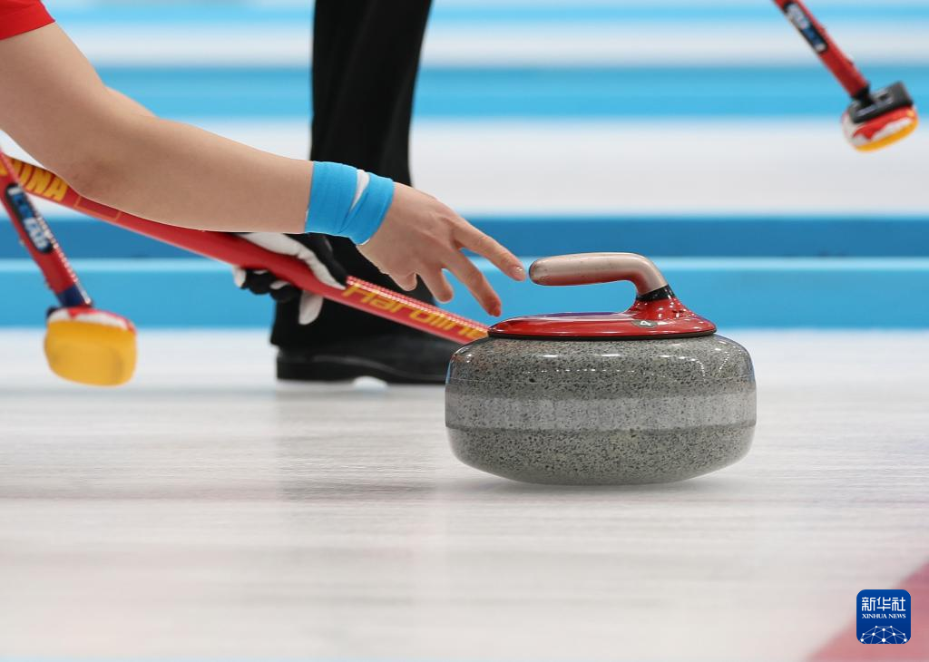 2月11日,中国队选手姜嘉怡在比赛中掷壶。