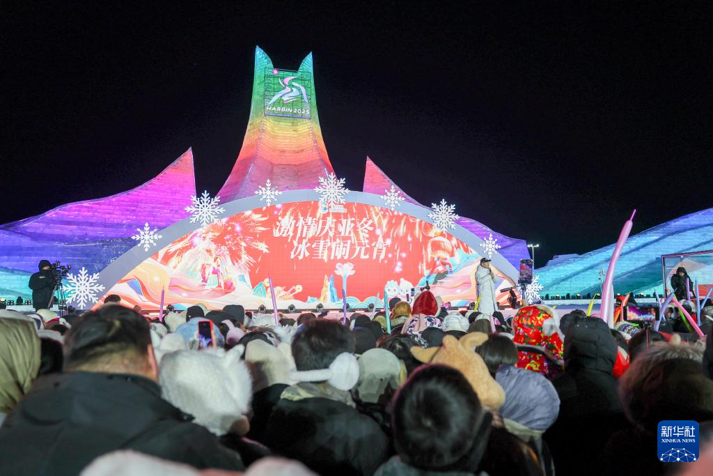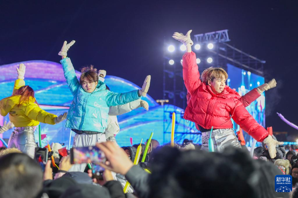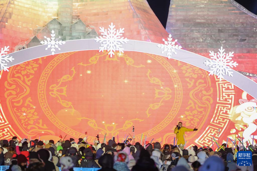 当日是元宵佳节,哈尔滨冰雪大世界梦想大舞台举行“激情庆亚冬 冰雪闹元宵”元宵节晚会。
