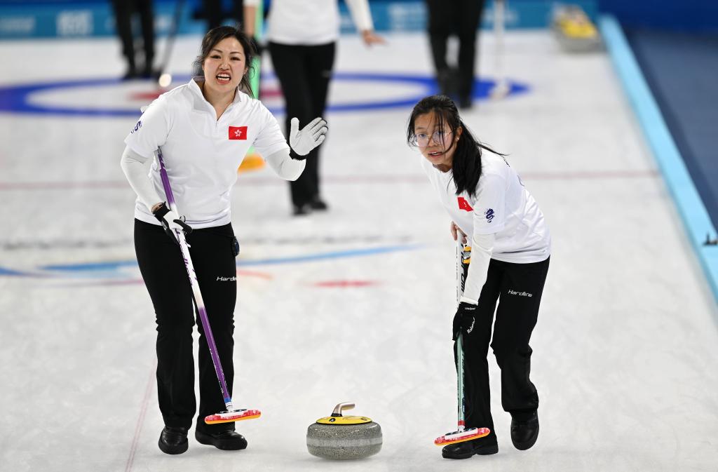 中国香港队选手胡翩翩投壶出手,队友陈葭跟进擦冰,相似的脸庞上都写满了认真;卡塔尔女队的一次投壶成功进入大本营,击掌庆祝的两名女队员笑起来一模一样;菲律宾男队选手马克·安赫洛·普菲斯特和恩里克·加布里埃尔·普菲斯特也时常让人难以区分。