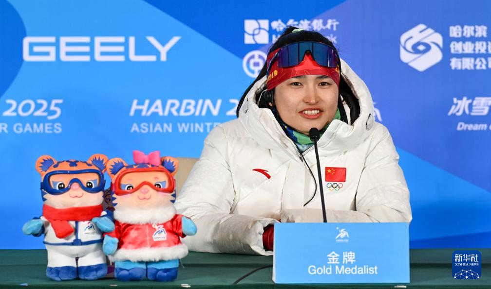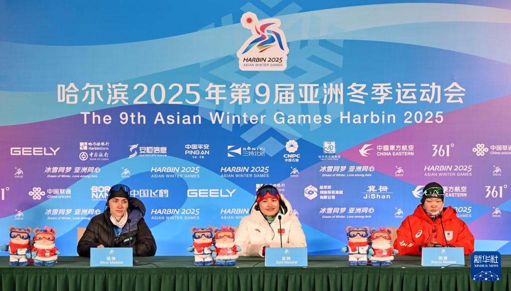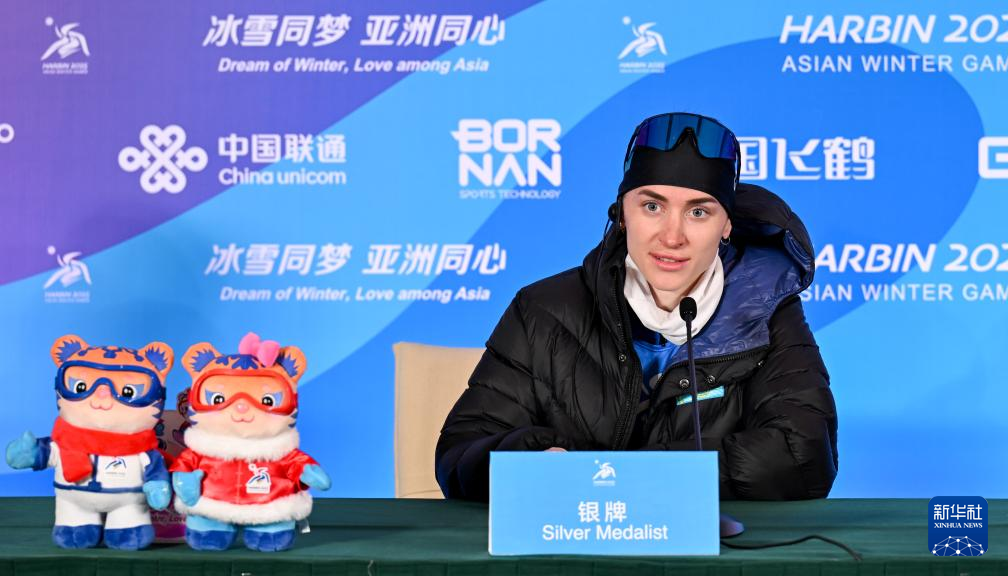 当日,第九届亚冬会越野滑雪女子4x5公里接力赛后新闻发布会在亚布力举行。