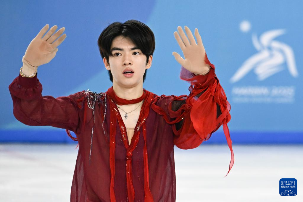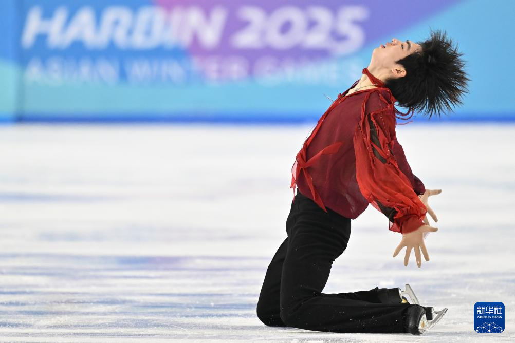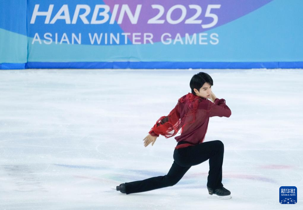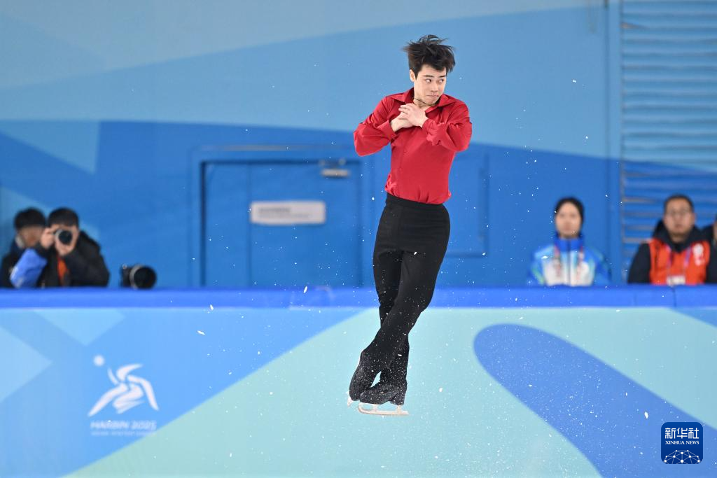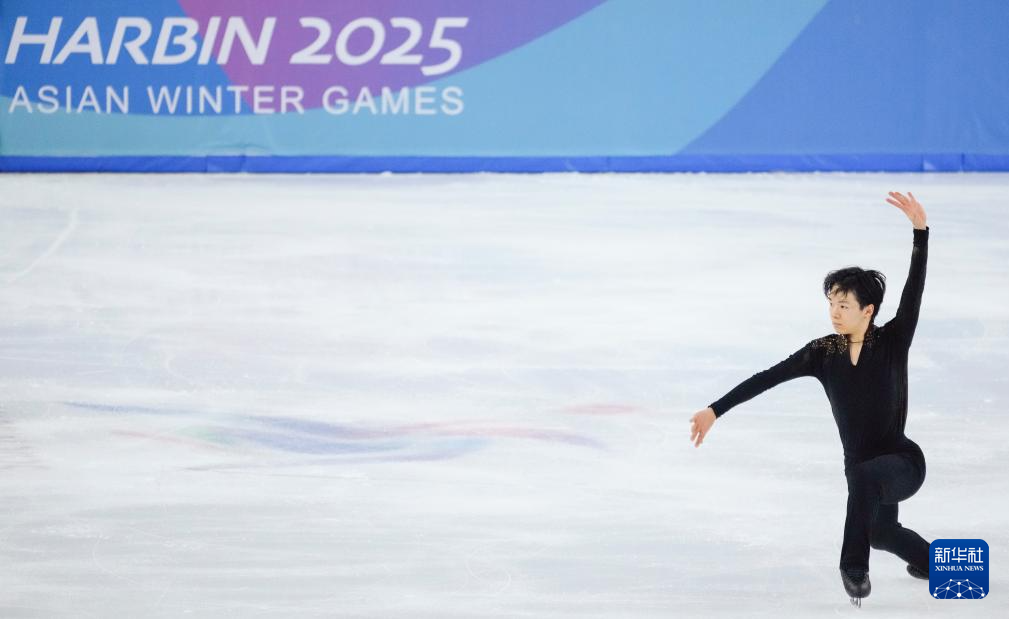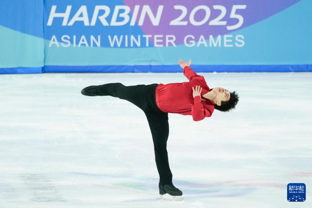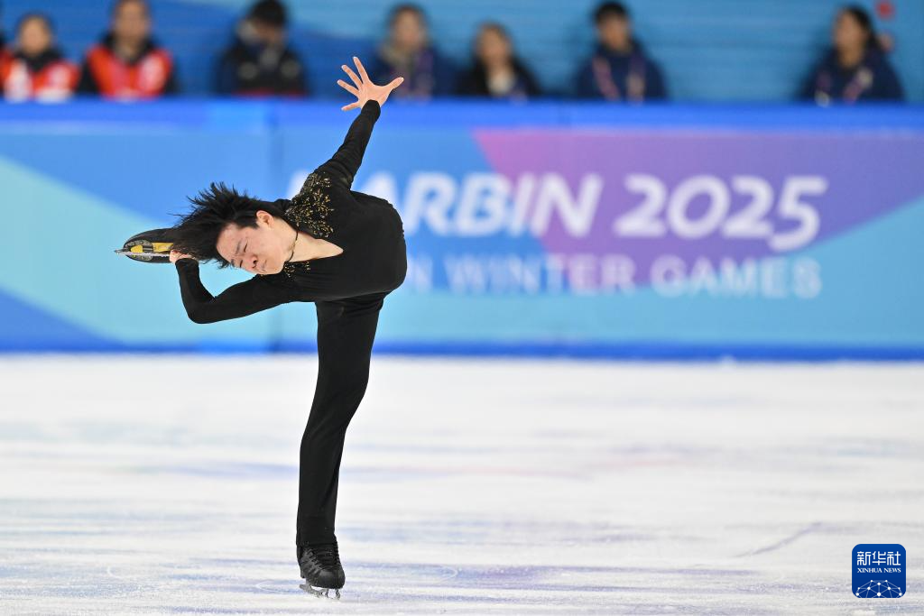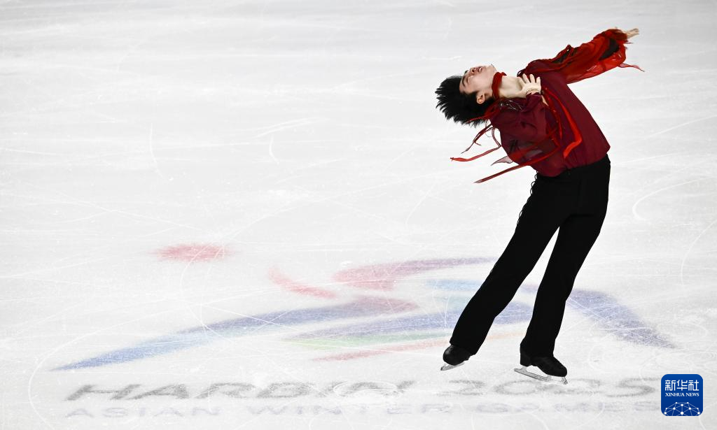 当日,第九届亚冬会花样滑冰项目男子个人滑自由滑比赛在哈尔滨举行。