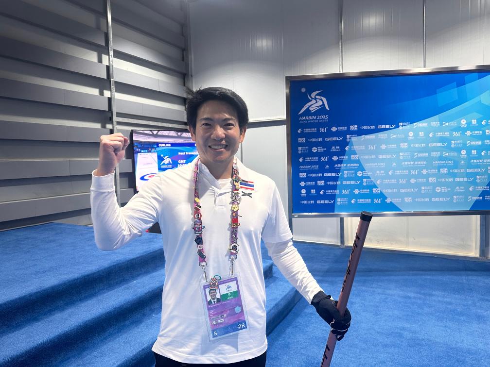 泰国冰壶男队队长蓬塞·马哈塔纳萨昆胸前挂满了沙特、卡塔尔、科威特等代表团的徽章,他也把换“pin”视为体育精神的体现。“换‘pin’成了共通语言,不同国家和地区的人们通过体育运动可以成为朋友。”