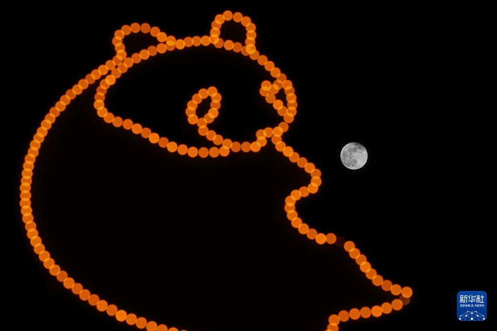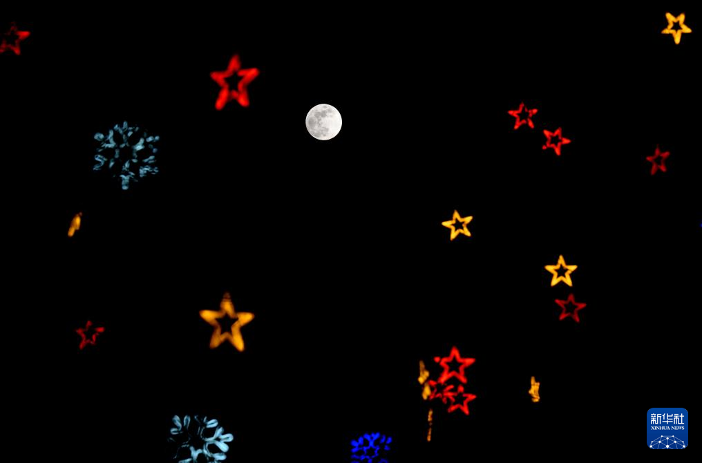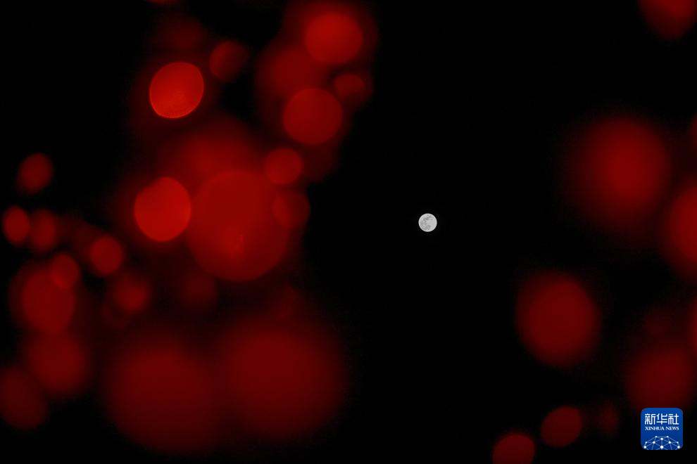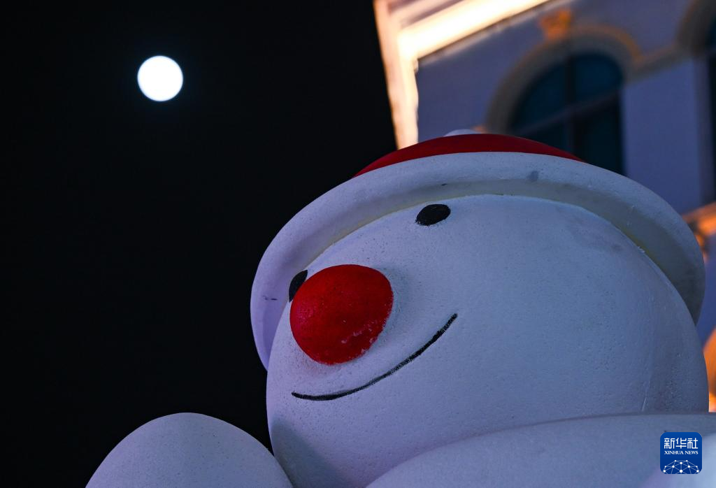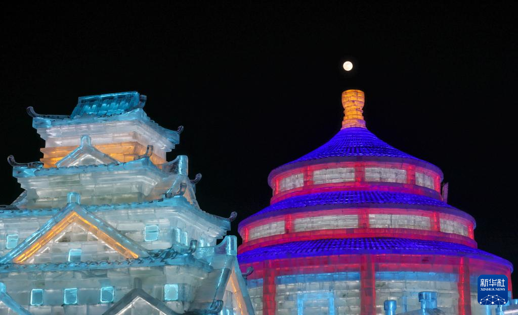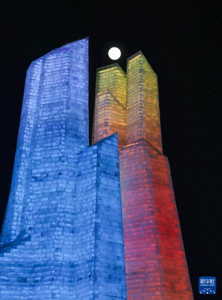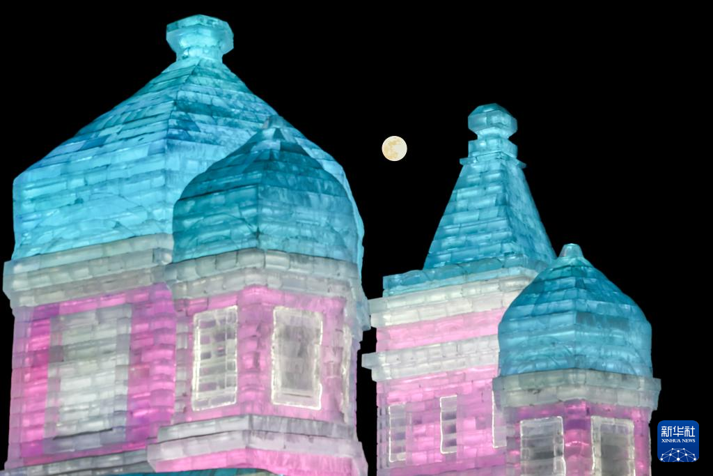 这是2月12日在哈尔滨冰雪大世界拍摄的月亮。