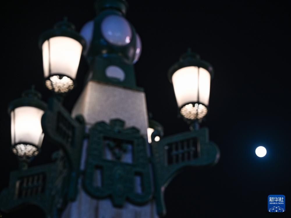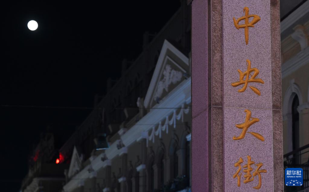 这是2月12日在哈尔滨中央大街拍摄的月亮。