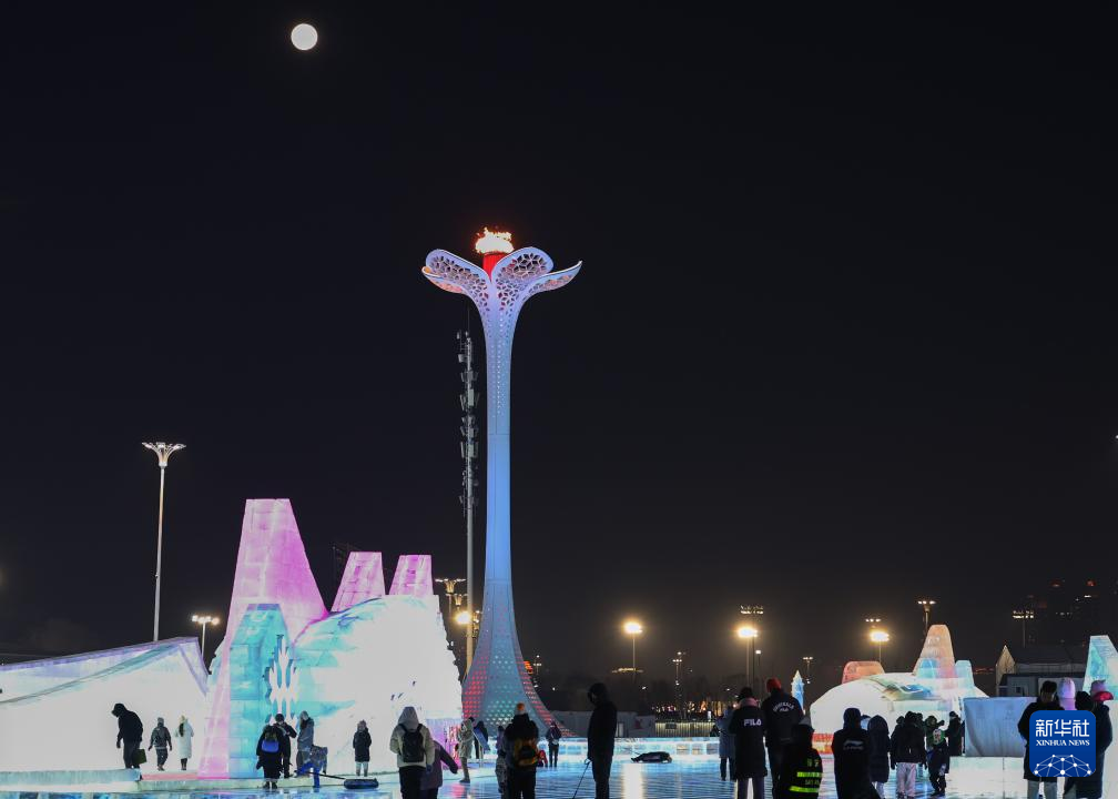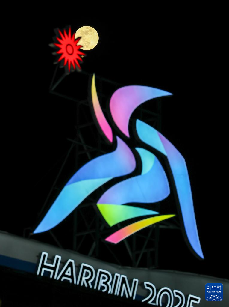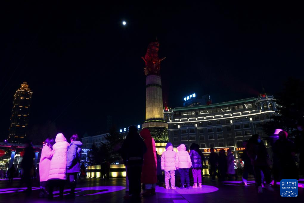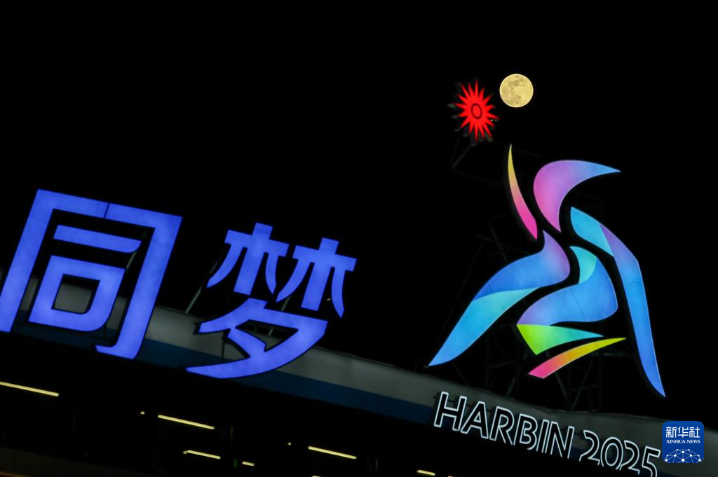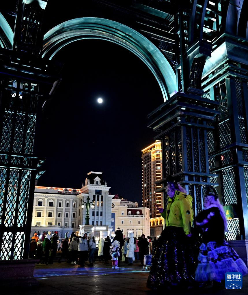 当日是元宵佳节,圆月高悬,银辉洒满大地,亚冬之城哈尔滨在此刻熠熠生辉。
