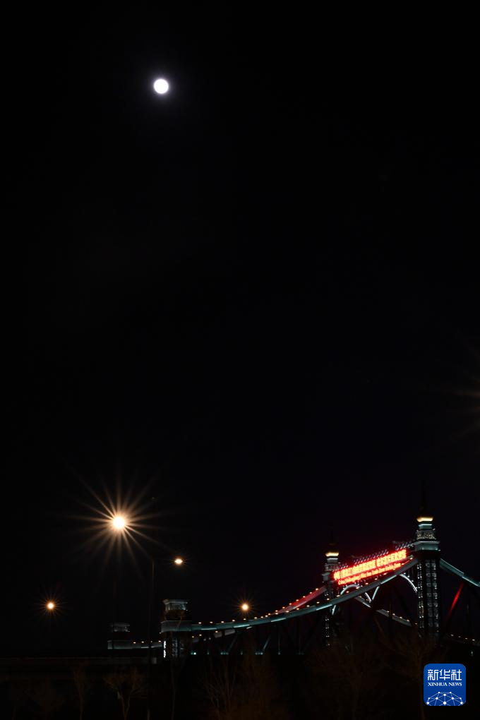 这是2月12日在哈尔滨阳明滩大桥拍摄的月亮。