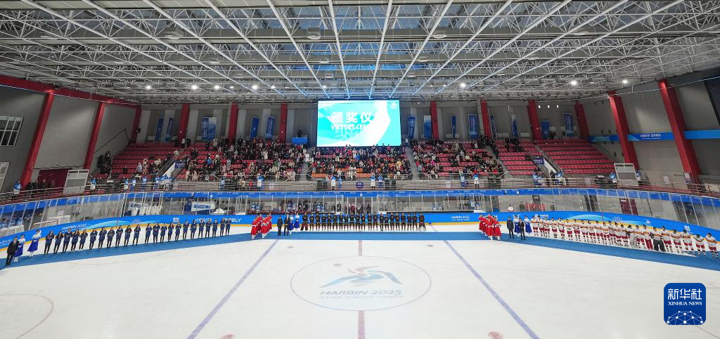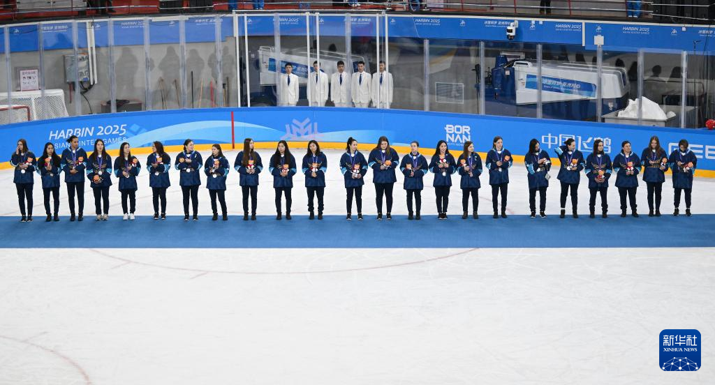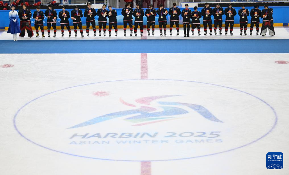 当日,第九届亚冬会女子冰球颁奖仪式在哈尔滨举行。