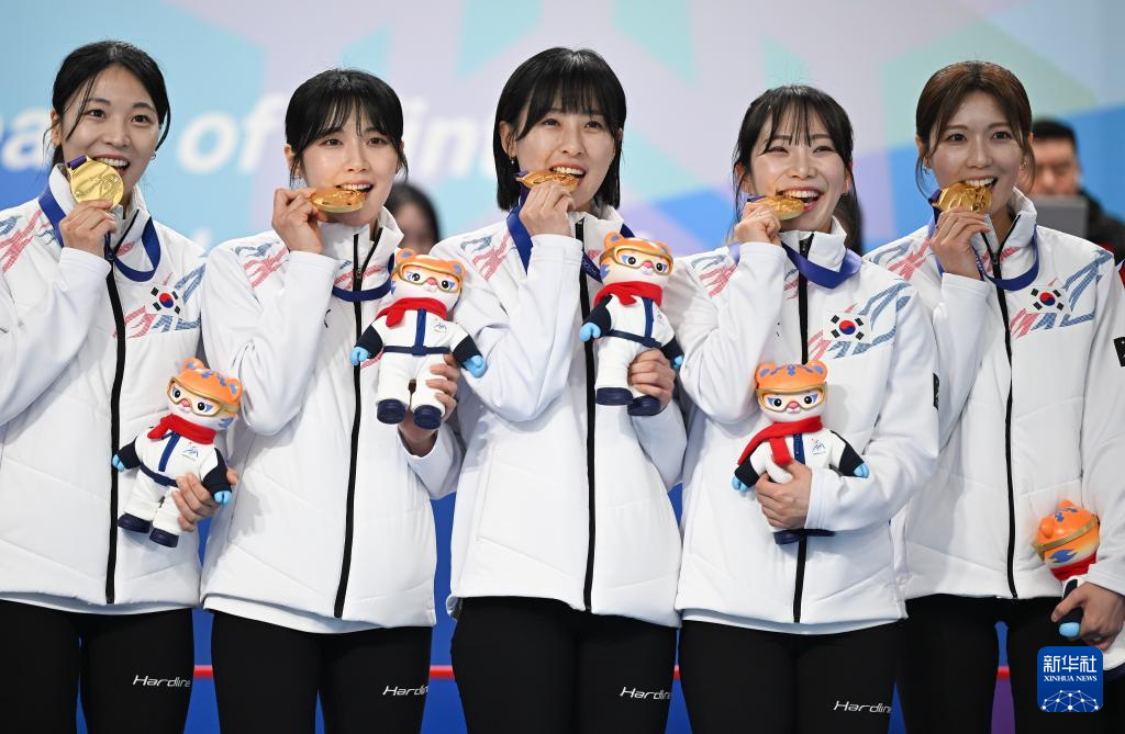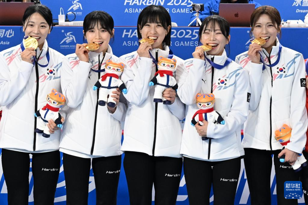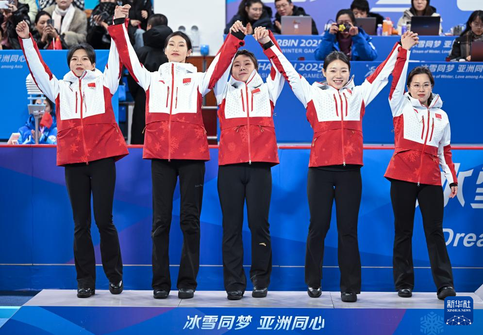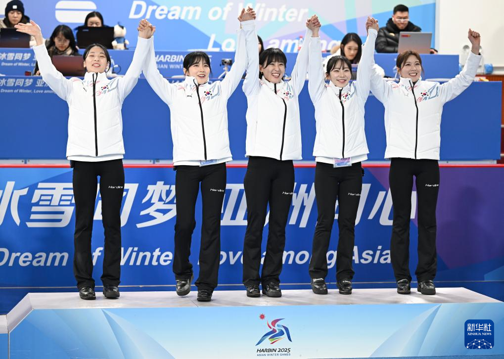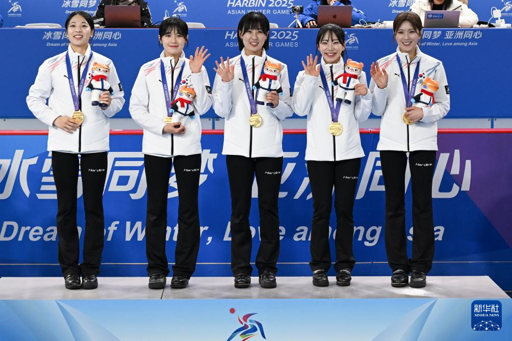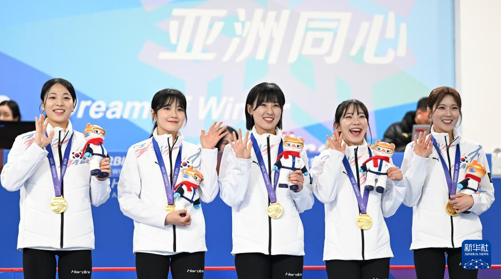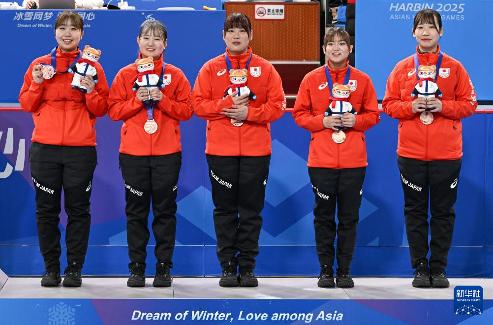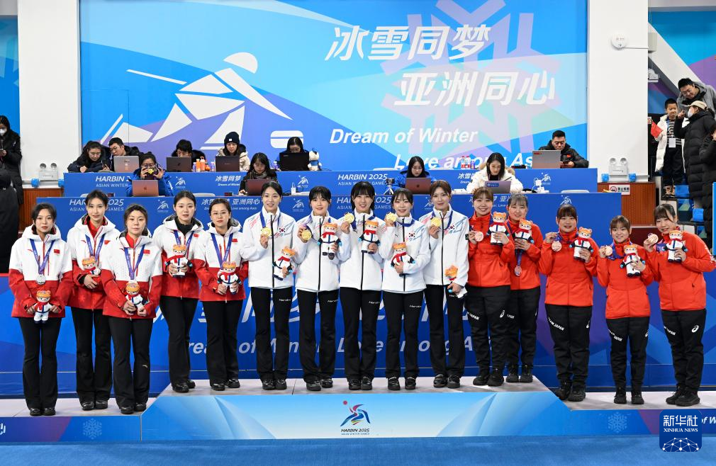 当日,第九届亚冬会女子冰壶颁奖仪式在哈尔滨举行。