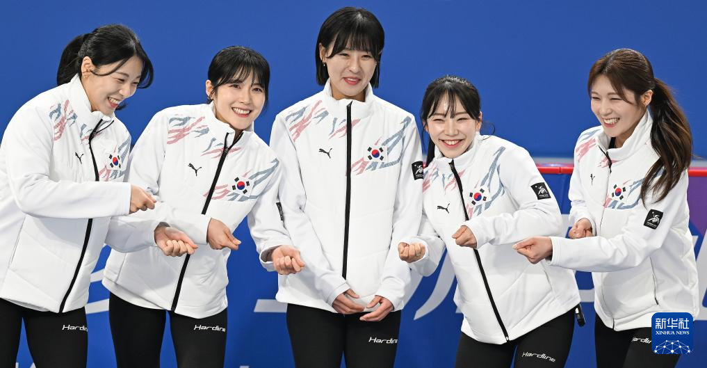 2月14日,冠军韩国队在颁奖仪式上。
