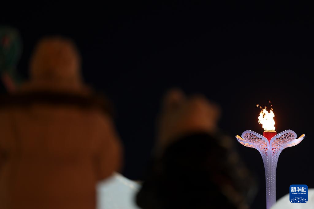 这是2月14日在闭幕式分会场哈尔滨冰雪大世界拍摄的主火炬。