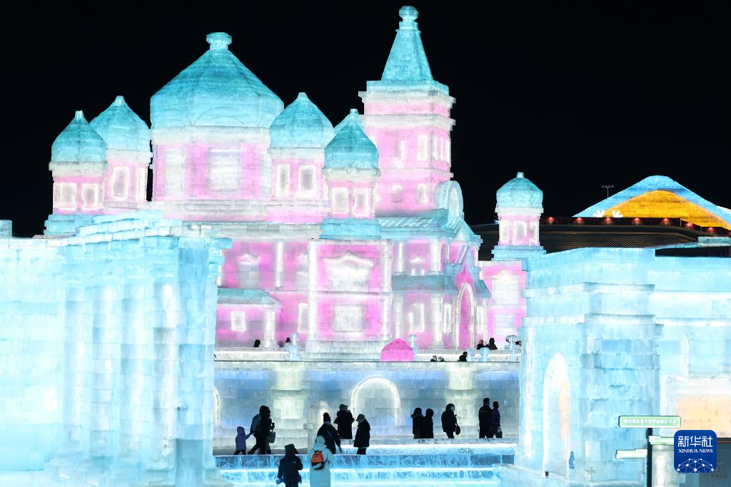 这是2月14日拍摄的哈尔滨冰雪大世界内景。