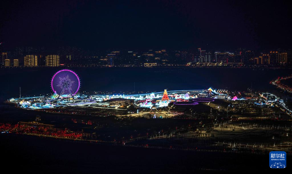 这是2月14日拍摄的闭幕式分会场哈尔滨冰雪大世界夜景。