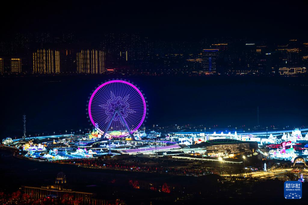 这是2月14日拍摄的亚冬会主火炬所在地哈尔滨冰雪大世界。