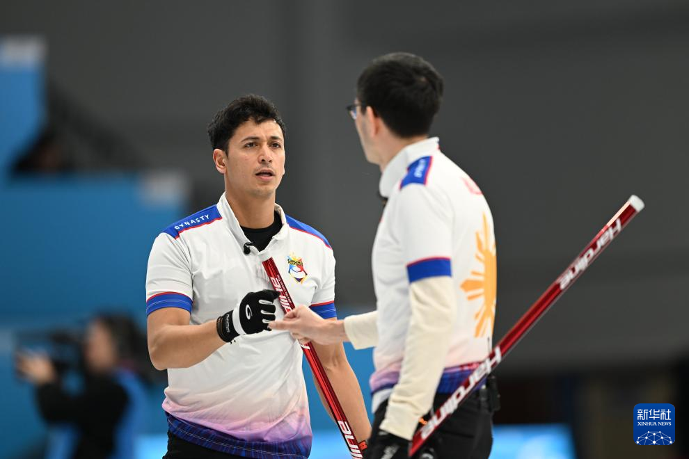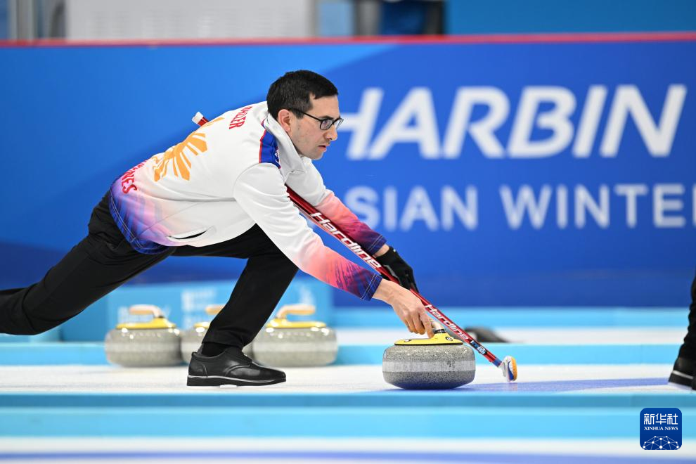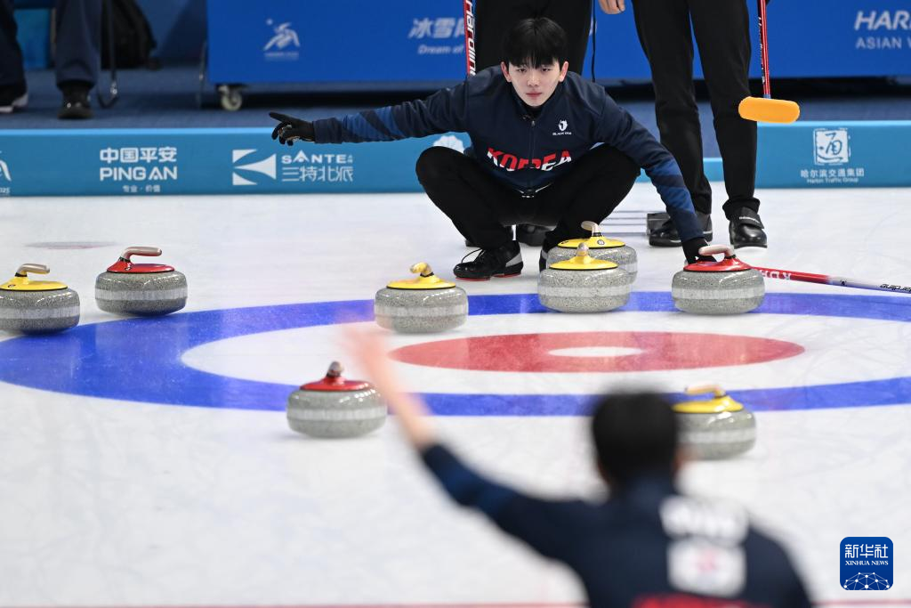 当日,在哈尔滨举行的第九届亚冬会冰壶男子金牌赛中,韩国队对阵菲律宾队。